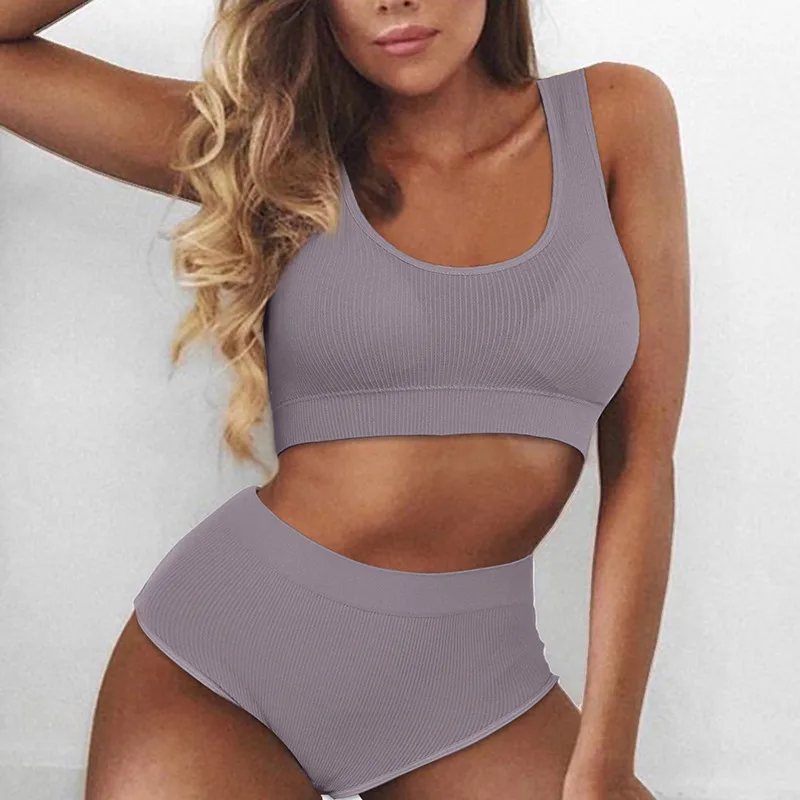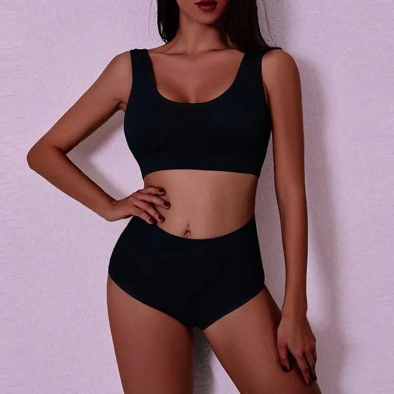 Комплект женского нижнего белья из бюстгальтера и трусиков, бесшовный бюстгальтер без косточек, спортивный комплект с трусами с высокой талией и V-образным вырезом, комплект сексуального нижнего белья