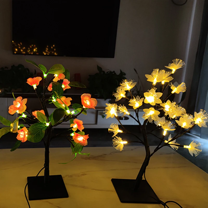 24 светодиода USB цветок дерево лампа украшение для дома комнаты Ночной светильник магазин праздничный свадебный Декор Вишневый персик цветение оптоволоконные подарки