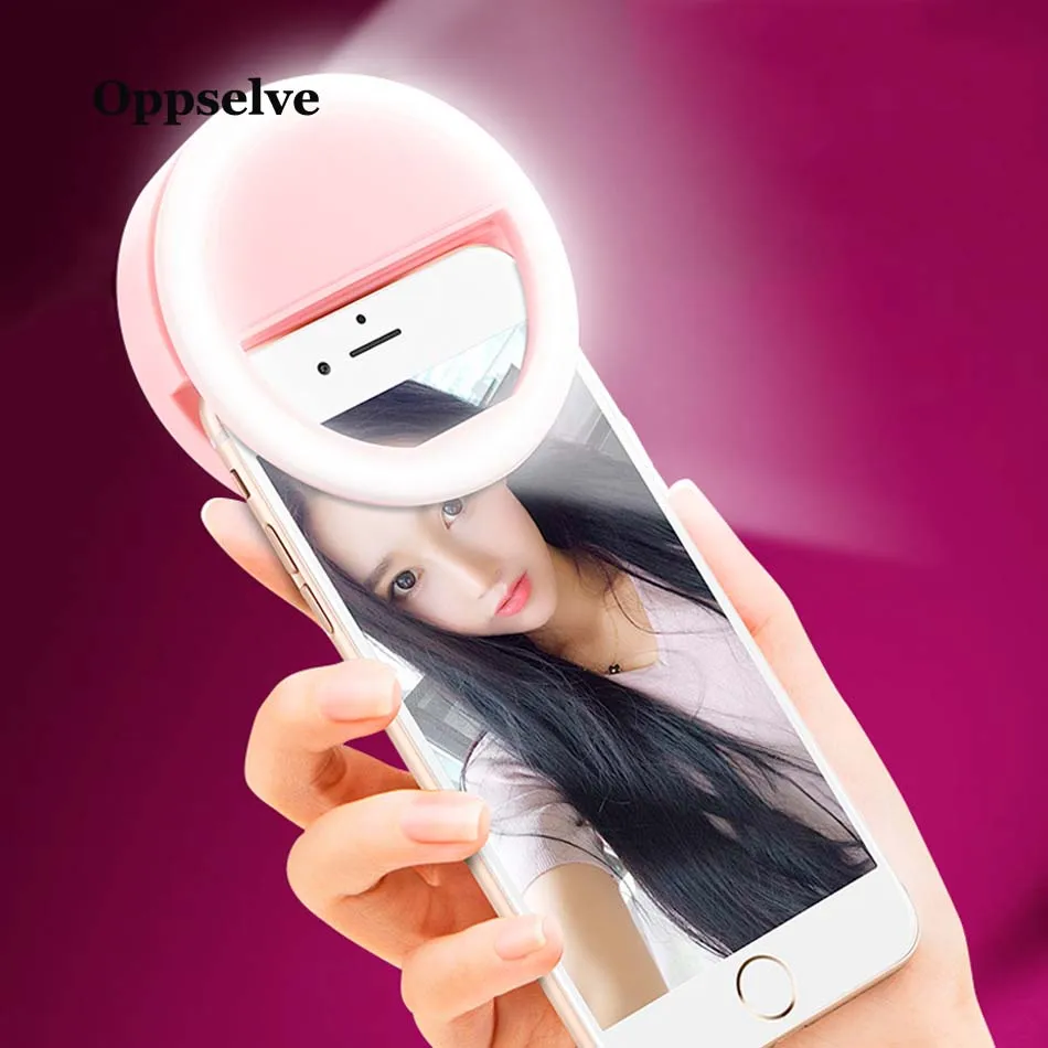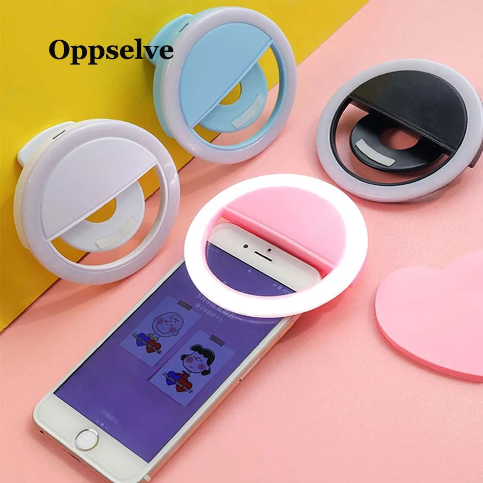 USB перезаряжаемые светодиодные лампы, кольцо для селфи, свет, лампа для селфи с линзой, кольцевой зажим для iPhone, Samsung, Xiaomi, телефонные вспышки