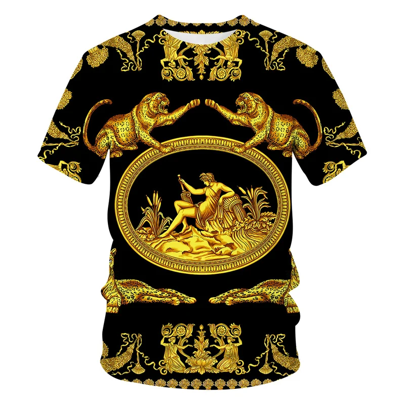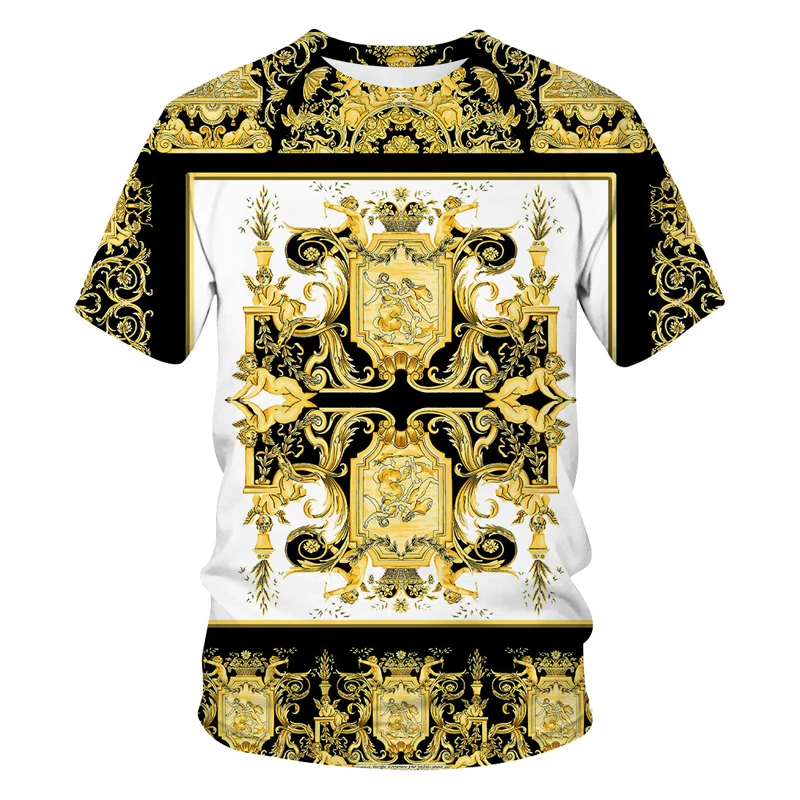 Футболка мужская с 3D-принтом в стиле барокко, роскошная брендовая ...