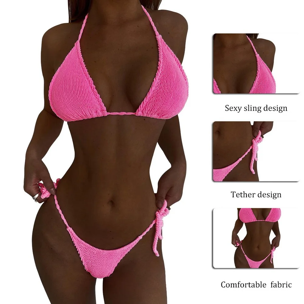 Сексуальный треугольный комплект бикини 2022, Женский однотонный ре...