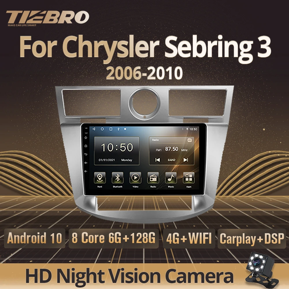 Автомагнитола TIEBRO для Chrysler Sebring 3 JS 2006-2010 2DIN Android 10 стереоприемник 6G + 128G IPS экран авторадионавигация GPS