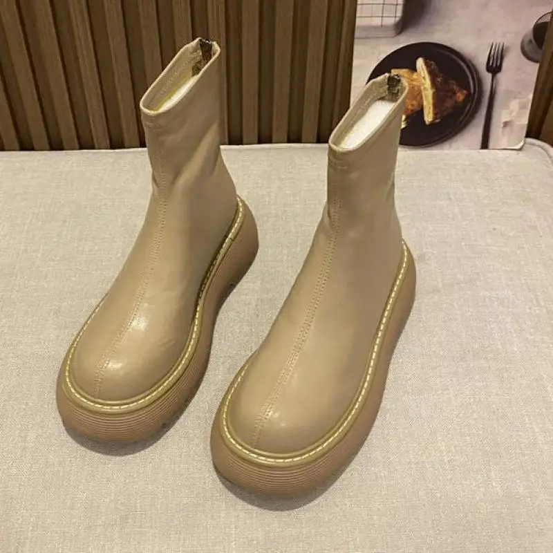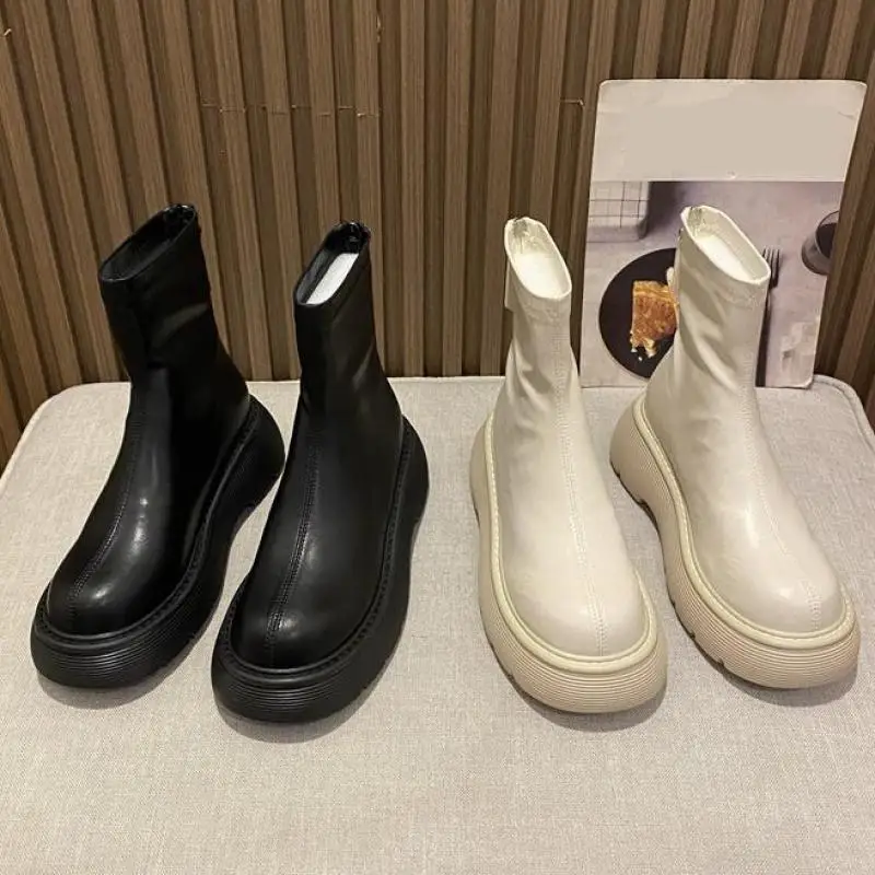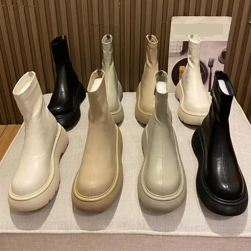 Женские ботильоны без застежки, зимние ботинки челси на платформе, ...