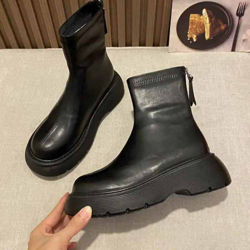Женские ботинки на среднем каблуке, Роскошные Дизайнерские ботильоны на молнии с круглым носком, модная обувь на квадратном каблуке, 2022