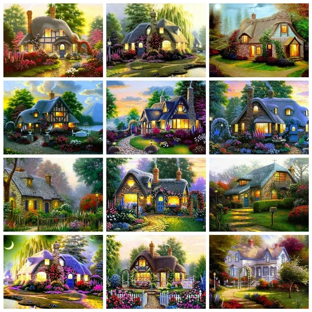 5d мозаика, алмазная вышивка, вышивка Дом, закат, алмазная живопись, полный квадратный сад, пейзаж, настенные картины