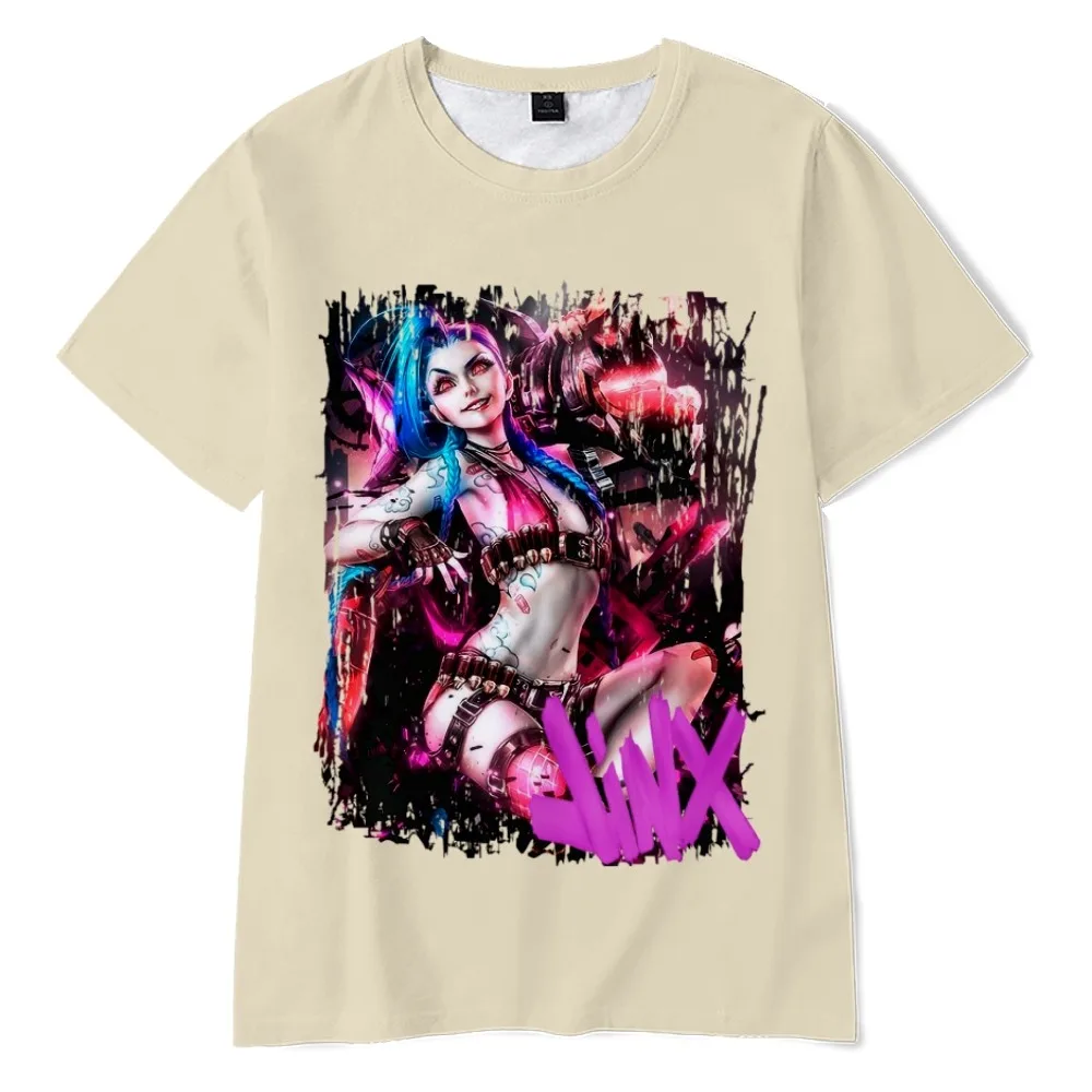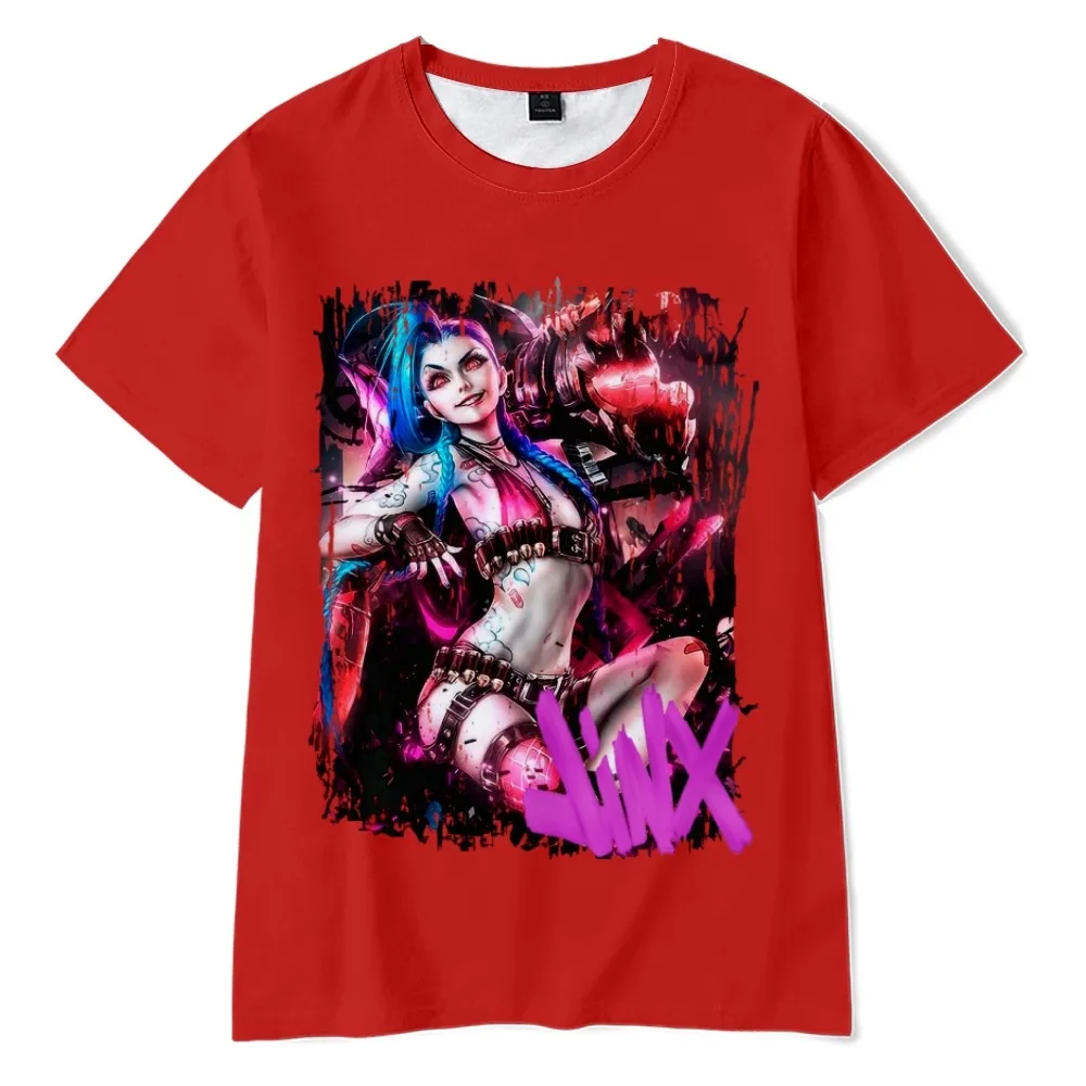 Футболка Arcane Jinx коллекция 2021 года, футболка LOL с О-образным вырезом для мужчин и женщин, Мужская футболка, многоцветная Футболка с коротким рукавом, уличная одежда в стиле Харадзюку, милые футболки