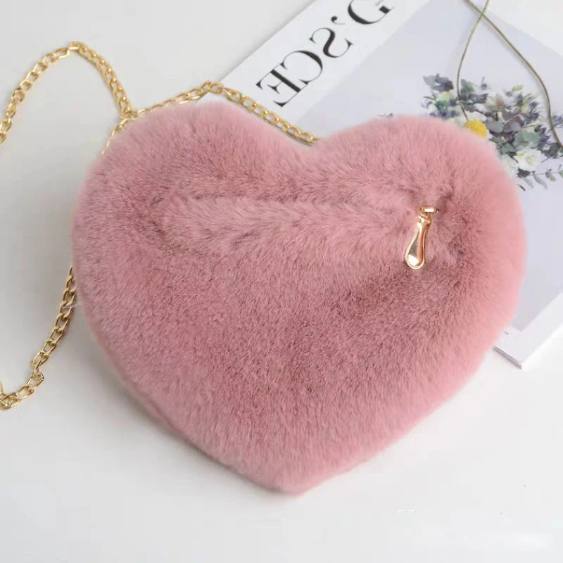 Модные женские сумочки в форме сердца, милые сумки через плечо из искусственного меха, кошелек, плюшевая сумка на цепочке, женская сумка на плечо