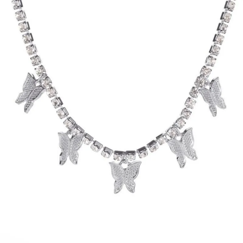 Роскошное Ожерелье Стразы чокер для женщин золотой серебряный цвет подарок короткая бабочка кулон ожерелье украшение для вечеринки ювелирные изделия