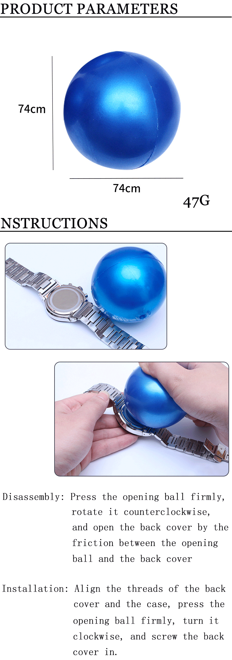 Особенности:100% новый и высокое качество.Позволяет легко снимать часы с обратной стороны.Мягкий, гибкий дизайн защищает часы от царапинНовый инструмент, позволяет вам открывать часы простым, точным и безопасным способом для любых, но самых сложных водонепроницаемых корпусов.Это умный дизайн позволяет ему приспосабливать и равномерно захватывать поверхность, придавая ей больше силы, но никогда не царапает ваши часы.Простота в использовании-просто сдавливайте, нажимайте, затем Поворачивайте.Характеристики:Состояние на 100% абсолютно новыйМатериал: резинаДиаметр: прибл. 8 см/3,5"Цвет: СлучайныйПосылка включает в себя:1 x чехол для часов с фрикционным шариком (ненадутый)Примечания:Это инструмент, а не игрушечный шар, используйте только для того, чтобы открыть чехол для задней панели часов с резьбой.Возможны незначительные отклонения в размерах из-за различных измерений вручную.Благодаря светильник и экрана Цвет Товара может быть s светильник ly отличается из-за характеристик монитора компьютера.