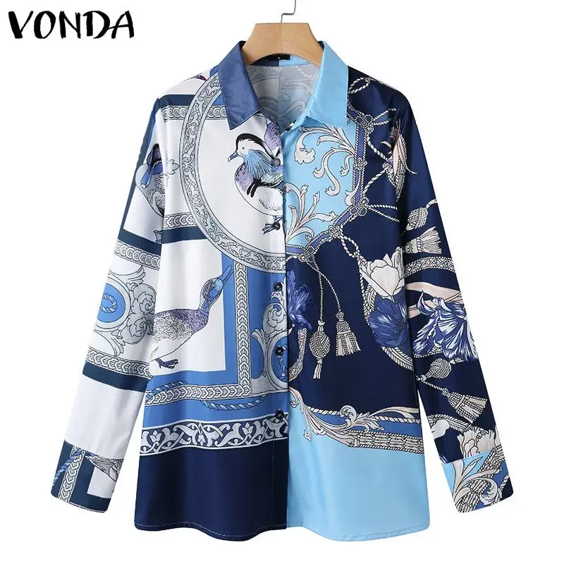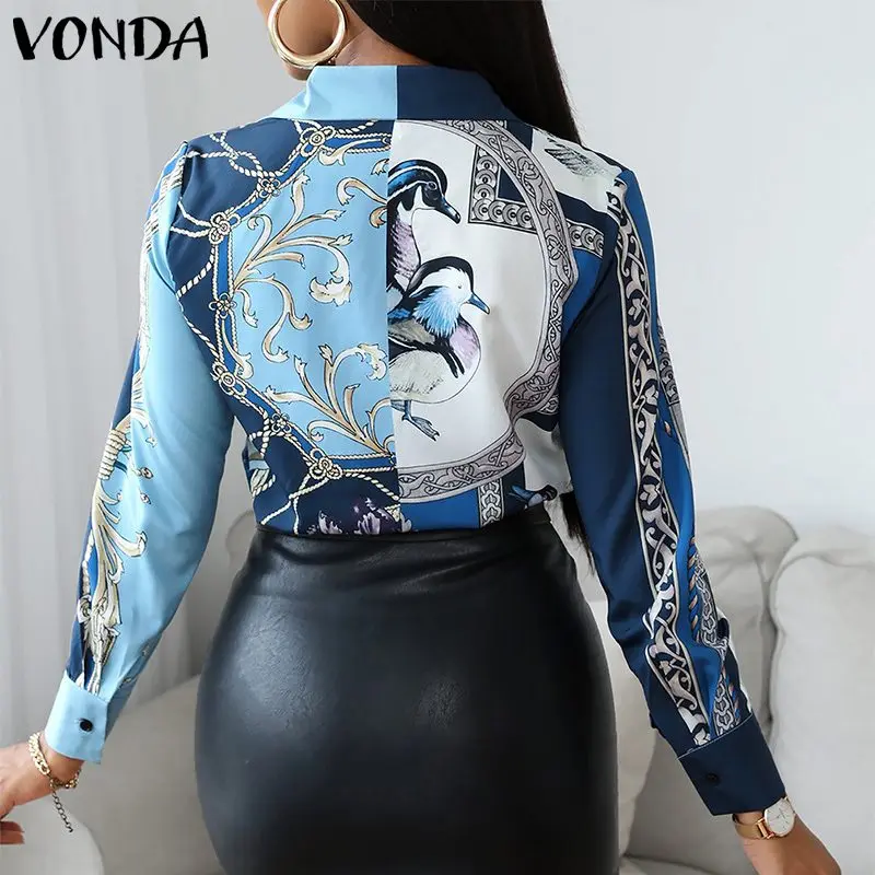 Женские рубашки с принтом 2022 VONDA Женская Офисная Элегантная блузка с длинным рукавом свободные пляжные Топы богемная блуза праздничные Топы женские