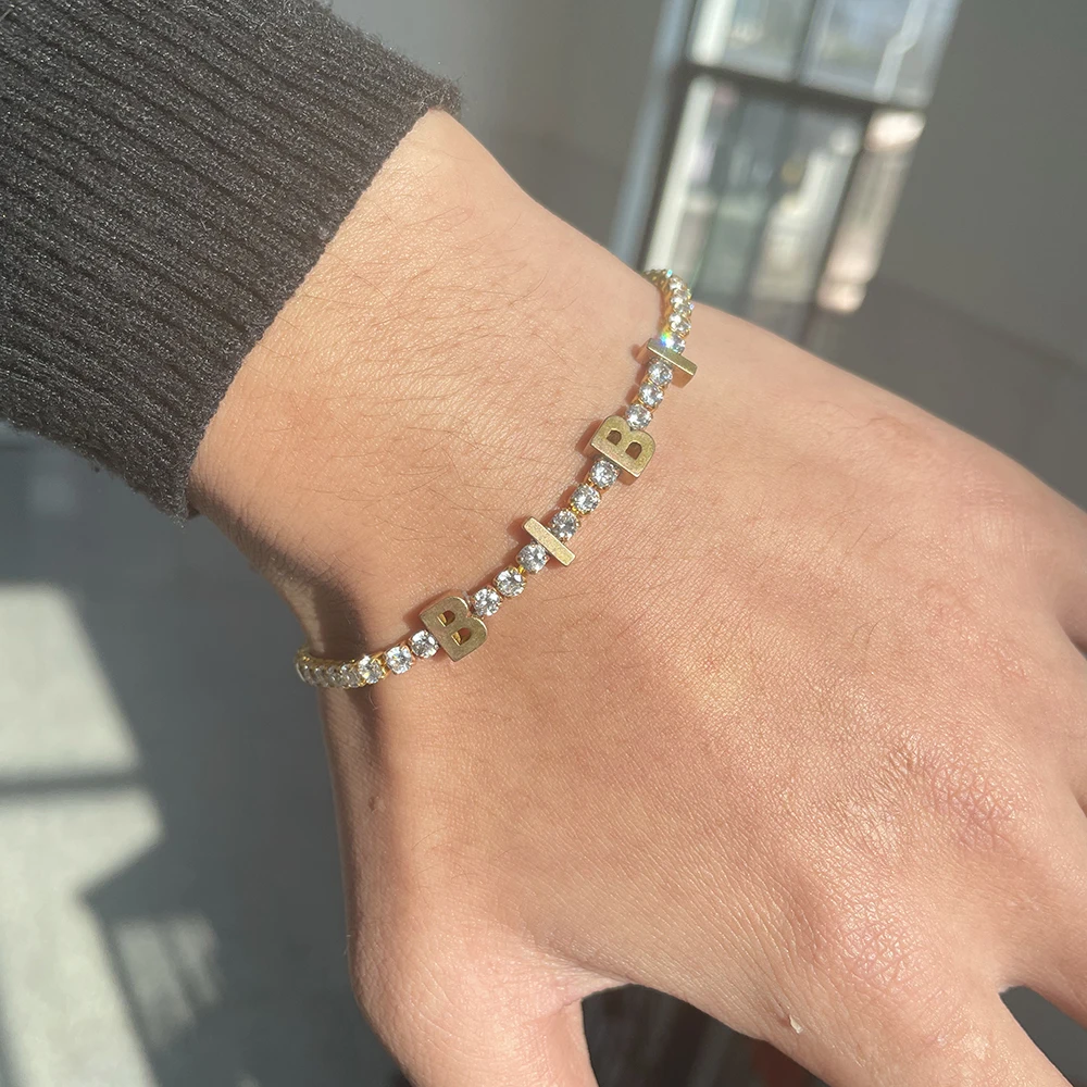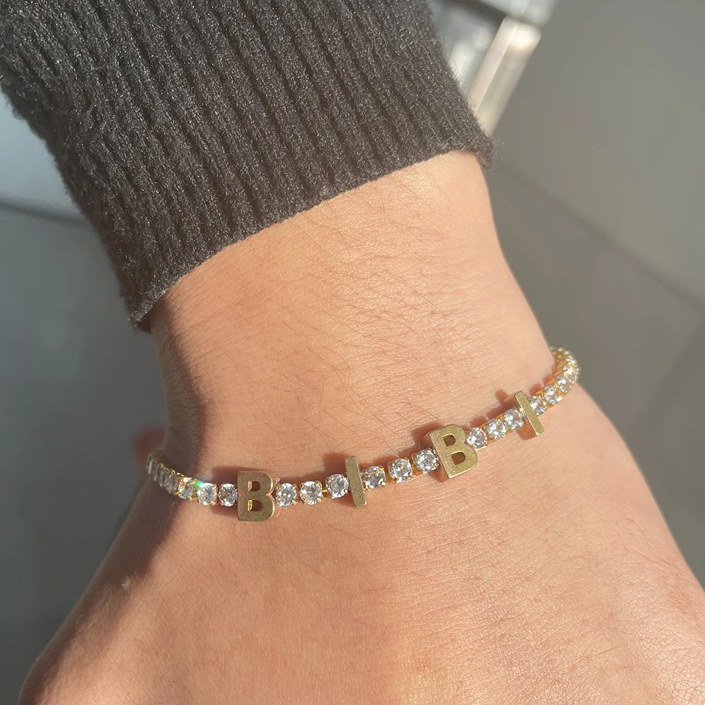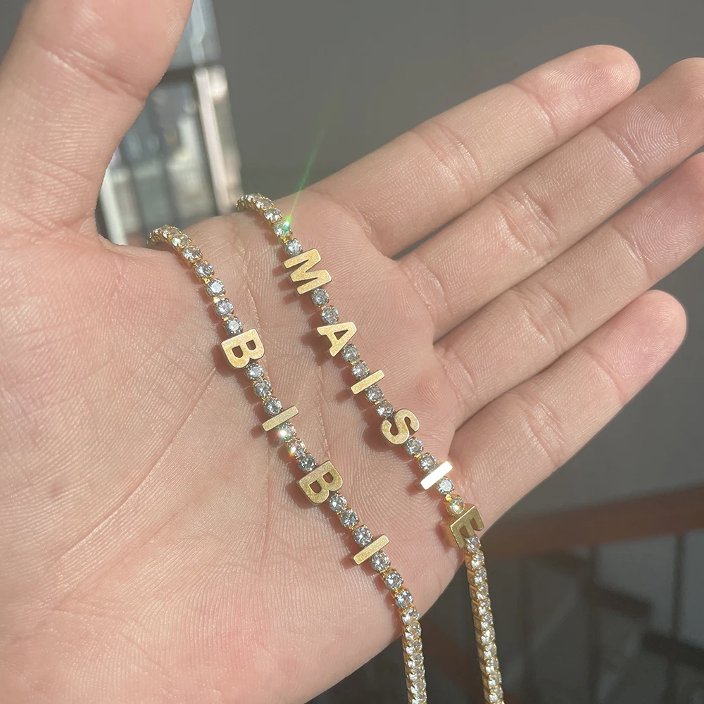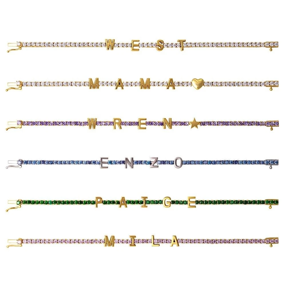 LUER OEM Pulsera цветной на заказ Теннисный браслет-цепочка с буквами AAA + кубический циркон персонализированный именной браслет женский изысканный подарок