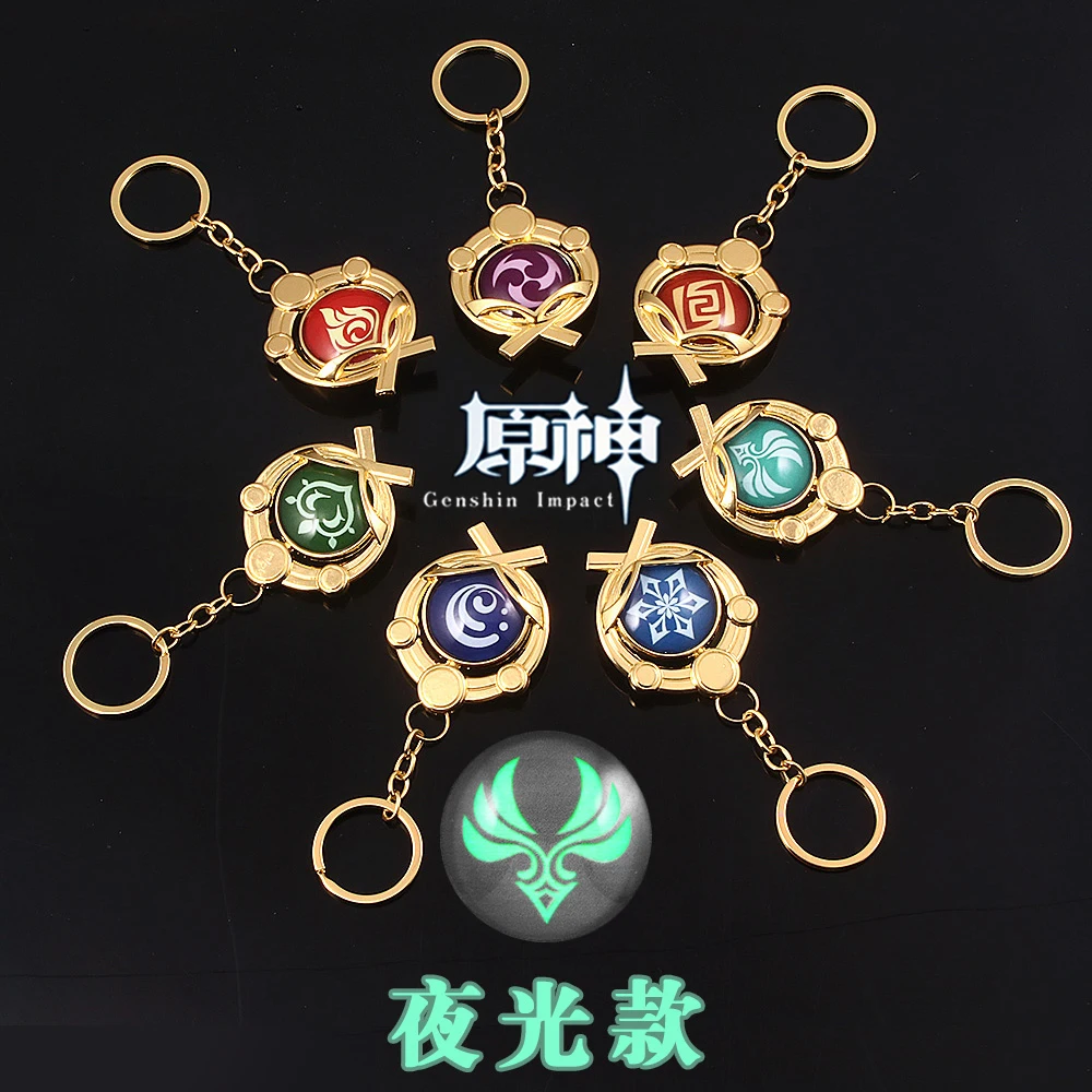 Брелок для ключей с аниме Genshin Impact светящийся Vision Ele men ...