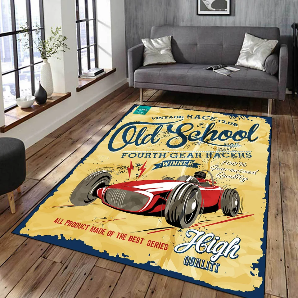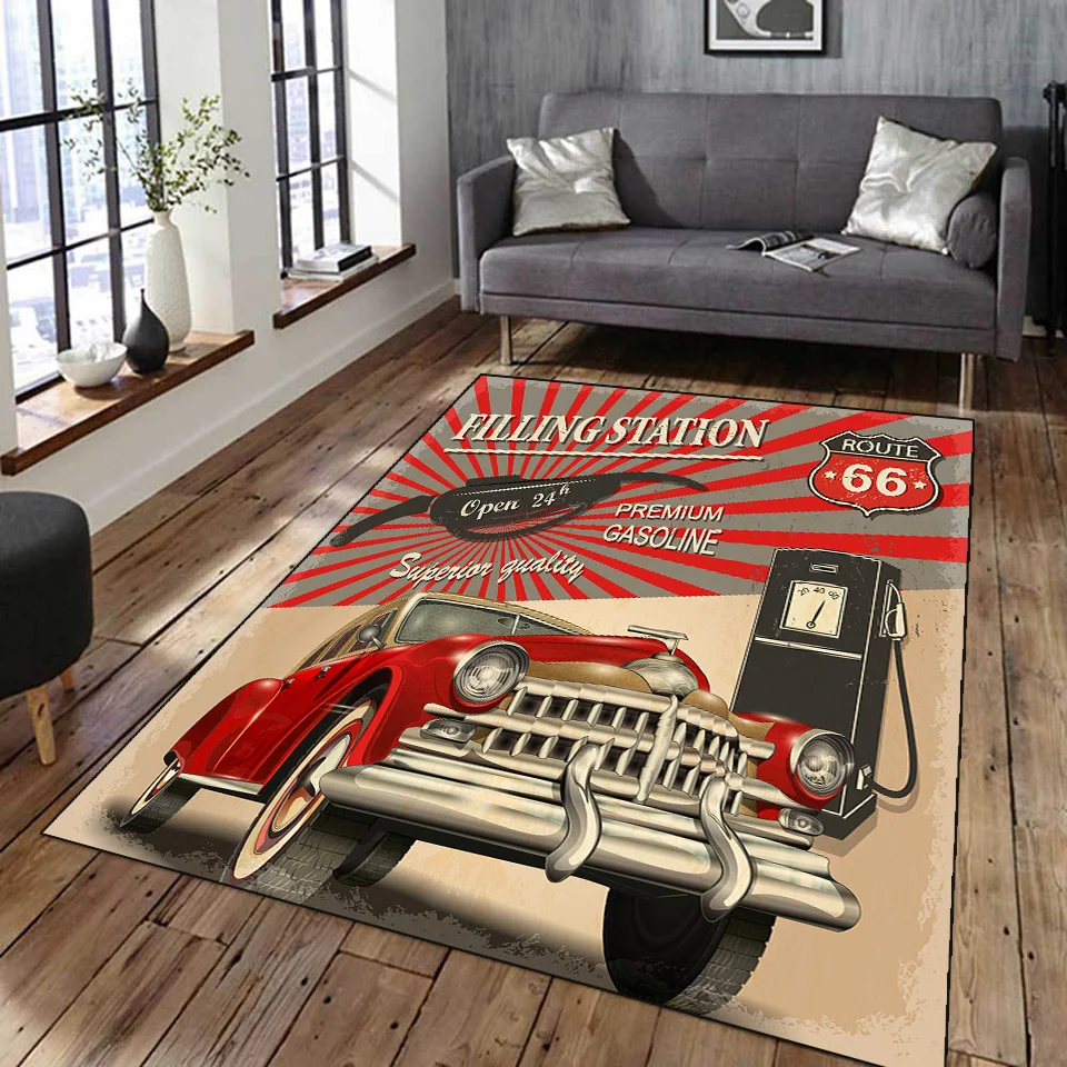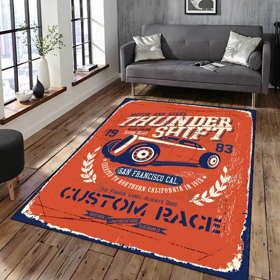Винтажный классический мотоциклетный гараж, ковер с 3D-принтом, для гостиной, ретро, гоночный автомобиль, большой ковер, домашний декор, для спальни, нескользящий коврик для пола