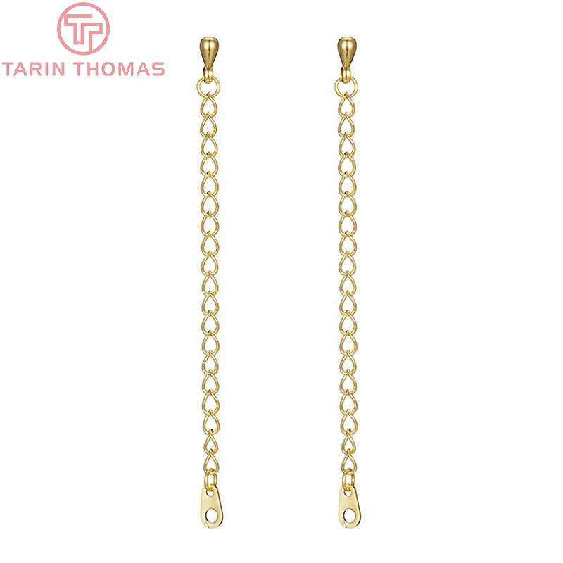 Цепочка удлиненная латунная, 24 К, 102 мм, 10 шт., длина 62 мм, ширина 2,9 мм, фурнитура для изготовления ювелирных изделий своими руками