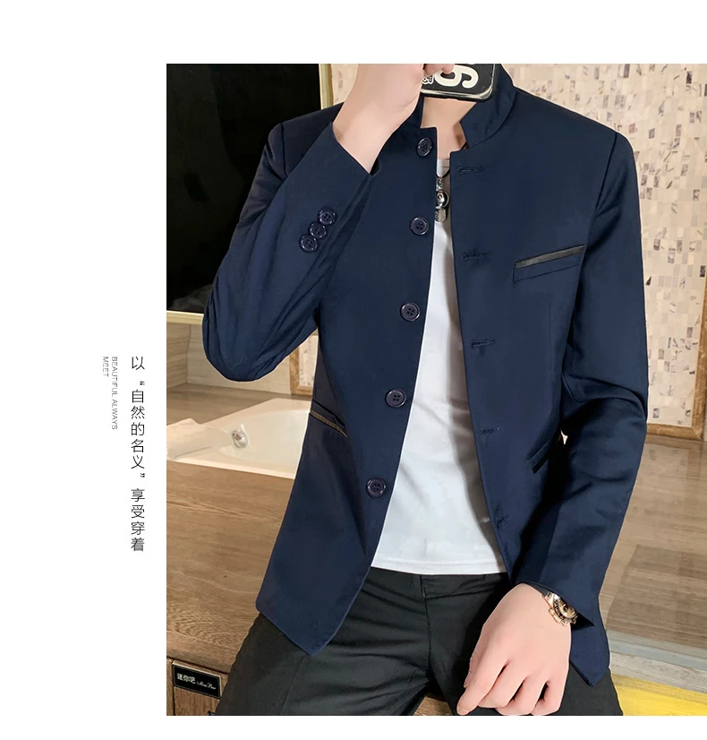 Мужской пиджак на трех пуговицах, с воротником-стойкой, осень 2021
