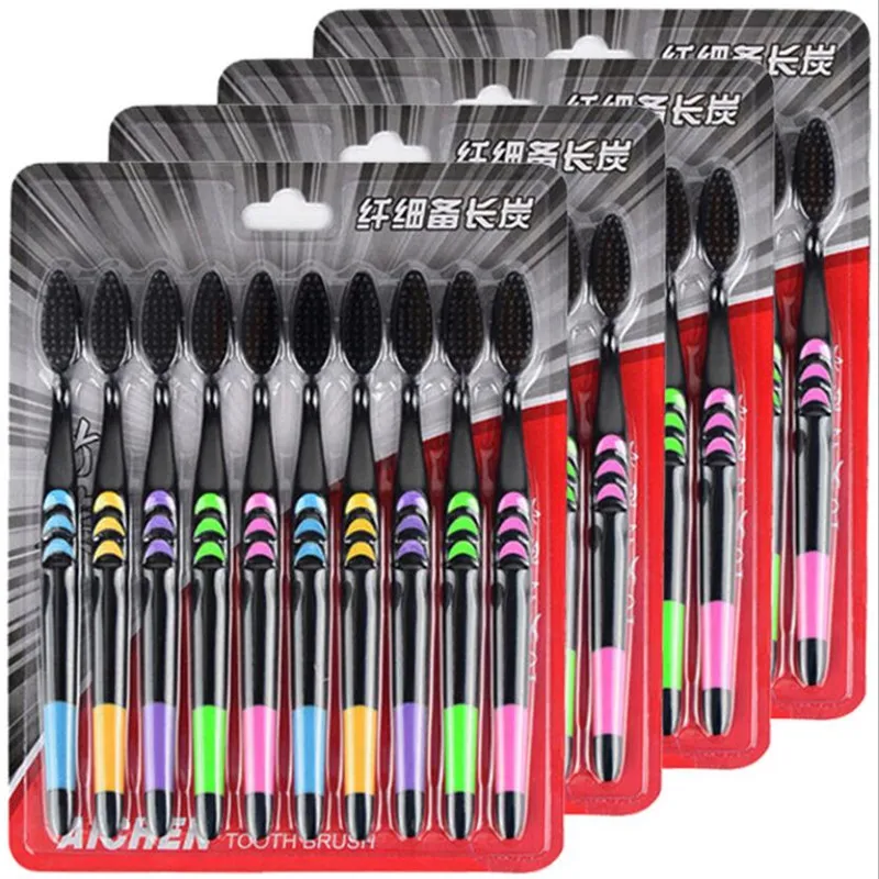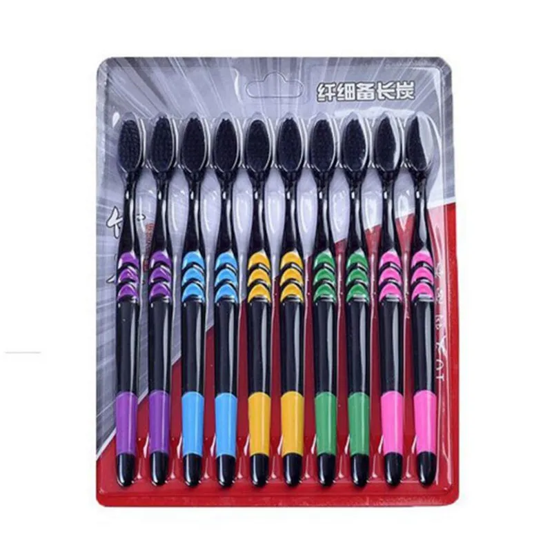 10 шт.упаковка, ультрамягкие зубные щётки с бамбуковым углем