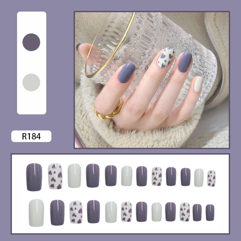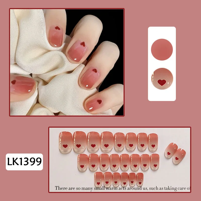 24 шт., накладные акриловые ногти с клеем в виде красного сердца