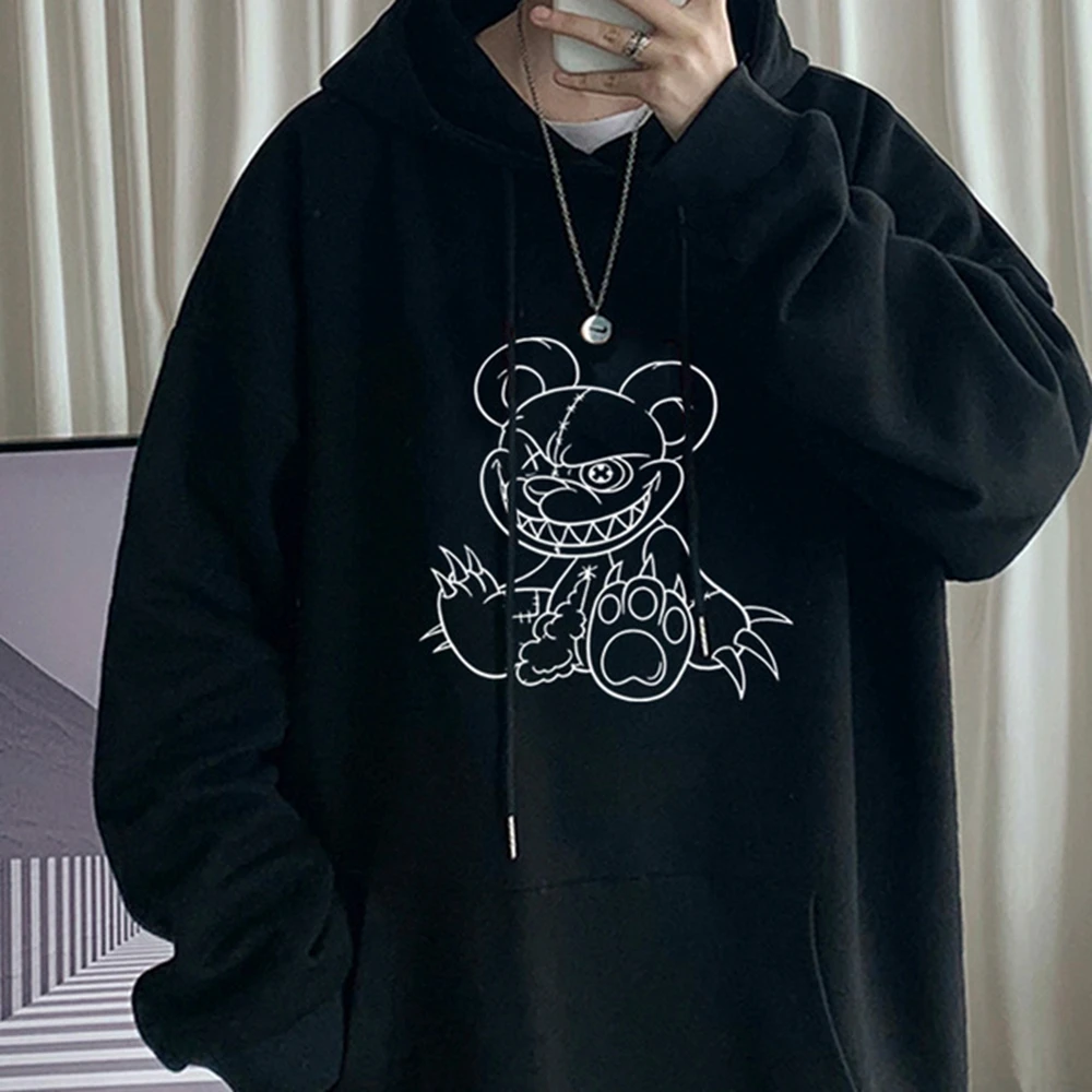 Повседневная Толстовка с капюшоном в стиле Харадзюку в стиле панк и ужасов с мультяшным медведем Y2K, толстовка для пар, осеннее пальто в стиле оверсайз, Спортивная Свободная одежда для женщин и мужчин