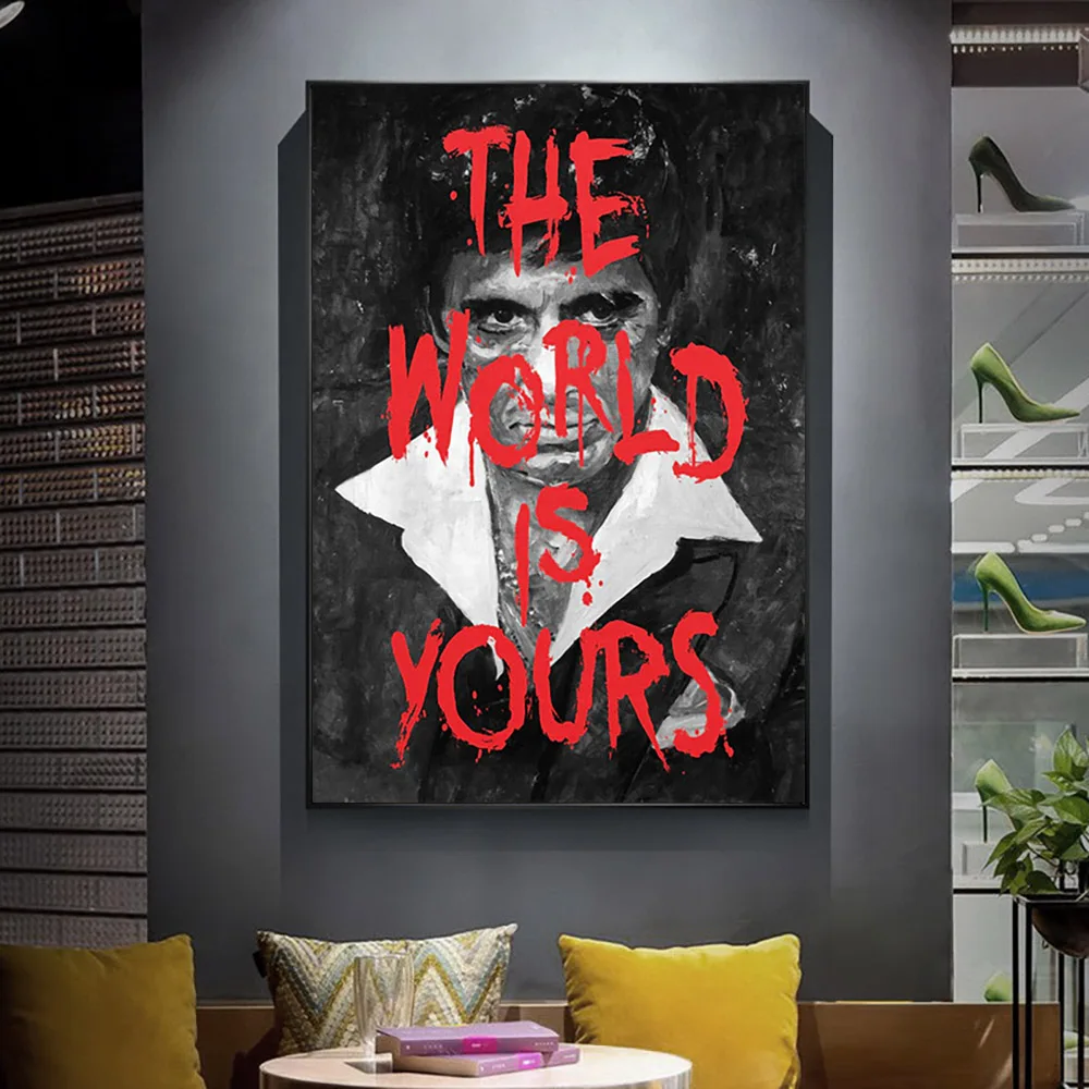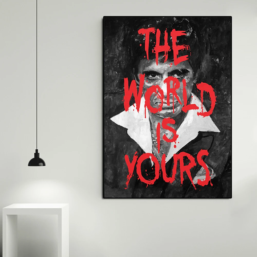 Постер фильма Мир ваш, Тони Монтана, скарлице, настенная живопись, печать на холсте, украшение для гостиной, домашний декор