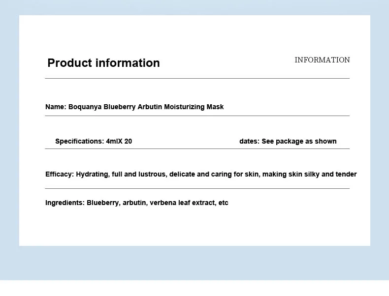 Содержит голубику, импортированные из Южной Кореи ингредиенты, такие как ar, но в ингредиентах для ухода за кожей, мягкая благоприятная для кожи текстура, увлажнение для сухой обезвоженной кожи, чтобы добавить влагу, чтобы улучшить сухую кожу, обезвоженную кожу, так что Гель для Кожи полон блеска, деликатный уход за кожей, поэтому кожа шелковистая гладкая.