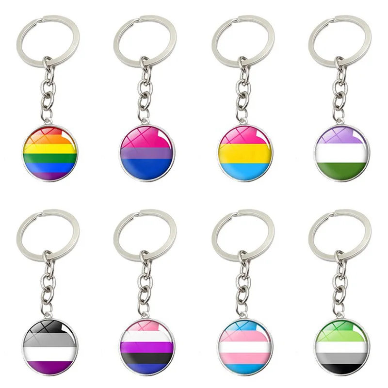 Ювелирные изделия для геев, брелок со стеклянным шариком, брелок из нержавеющей стали с флагом, металлический брелок для ключей, брелок для лесбийского Косплея