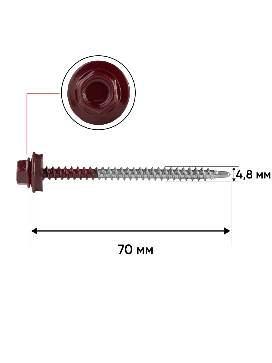 Саморез кровельный со сверлом 4,8*70 мм RAL 3005 винно красный 50 шт