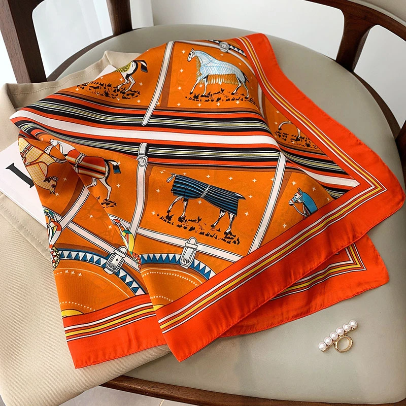 Женский шёлковый шарф с принтом лошади, 70x70 см