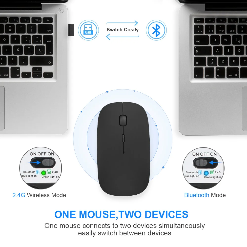 Мышь компьютерная беспроводная аккумуляторная с поддержкой bluetooth, usb