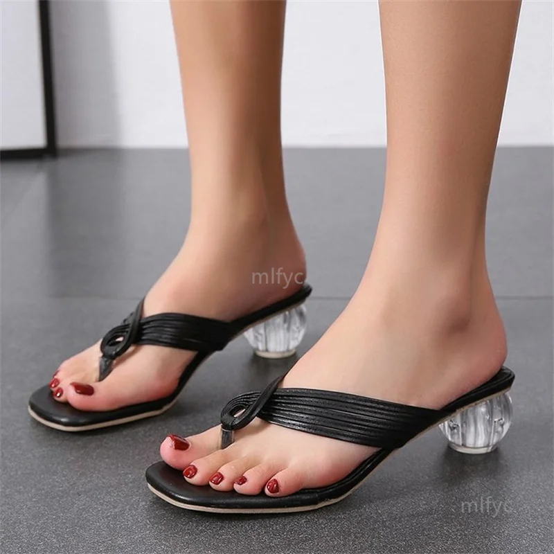 Женские прозрачные шлепанцы на толстом каблуке, босоножки и тапочки...