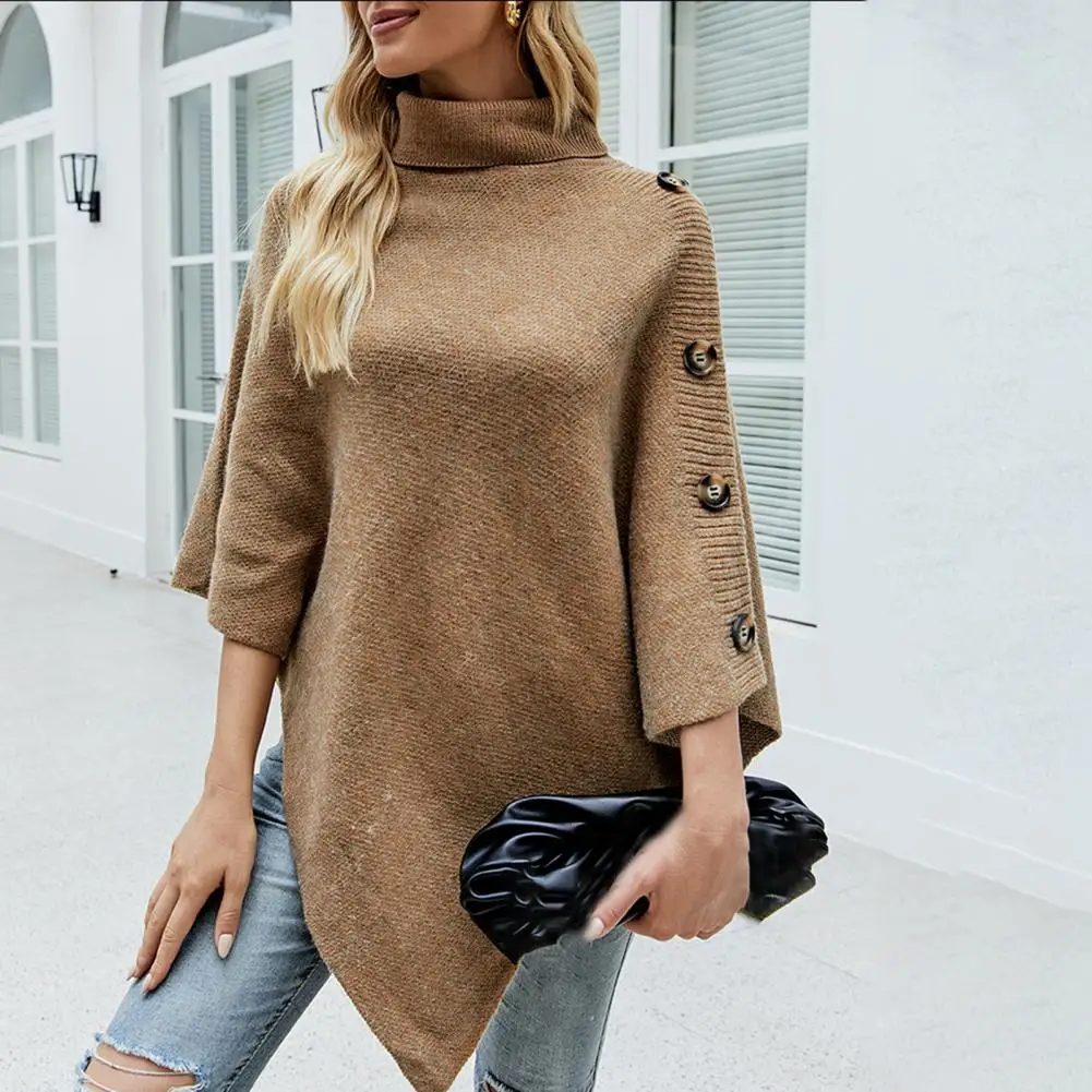 Женский свитер, стильная винтажная водолазка, однотонная накидка с рукавом летучая мышь, пальто-пончо для путешествий, осеннее вязаное пальто