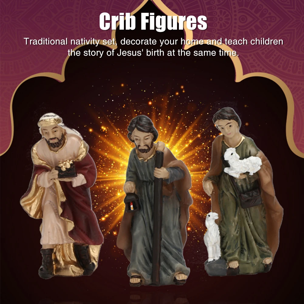 Статуэтка из смолы, 11 шт., настольные фигурки, Рождественская кроватка, фигурки, сцена Рождества, церковь, малыш, Иисус, домашний декор, католический подарок