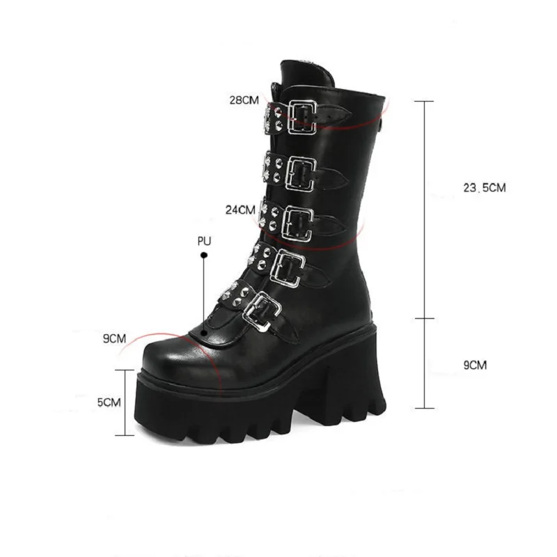 Ботинки женские на платформе, готическая обувь на танкетке, на молнии, с пряжкой, до середины икры, Военные боевые мотоциклетные сапоги, зимний сезон