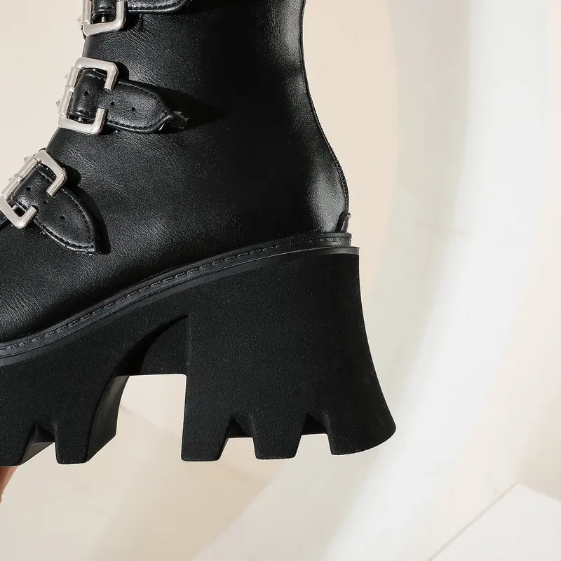 Женские ботинки на платформе в готическом стиле, черные мотоциклетн...