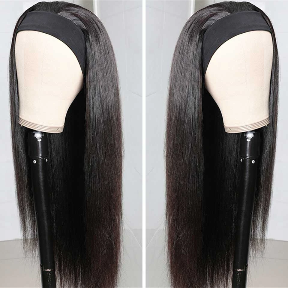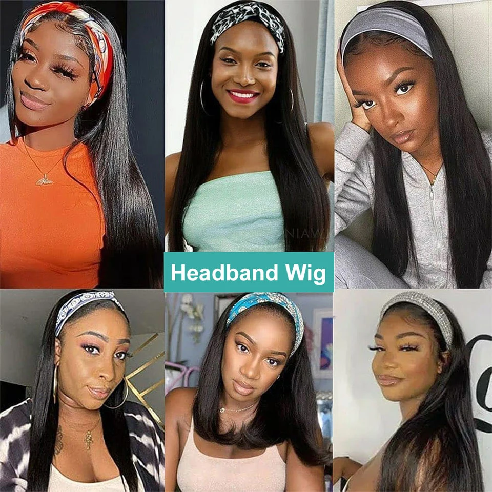 Парик с головной повязкой человеческие волосы индийские прямые женские парик с головной повязкой 180% Плотность Remy полностью машинные человеческие волосы парики для женщин