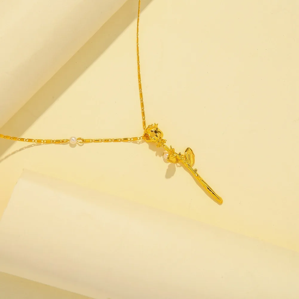 Ожерелье простое короткое с золотым и розовым жемчугом на цепочке до ключиц модное ожерелье с маленькими принцами и цветами розы для женщин ювелирные изделия с подвесками 2021