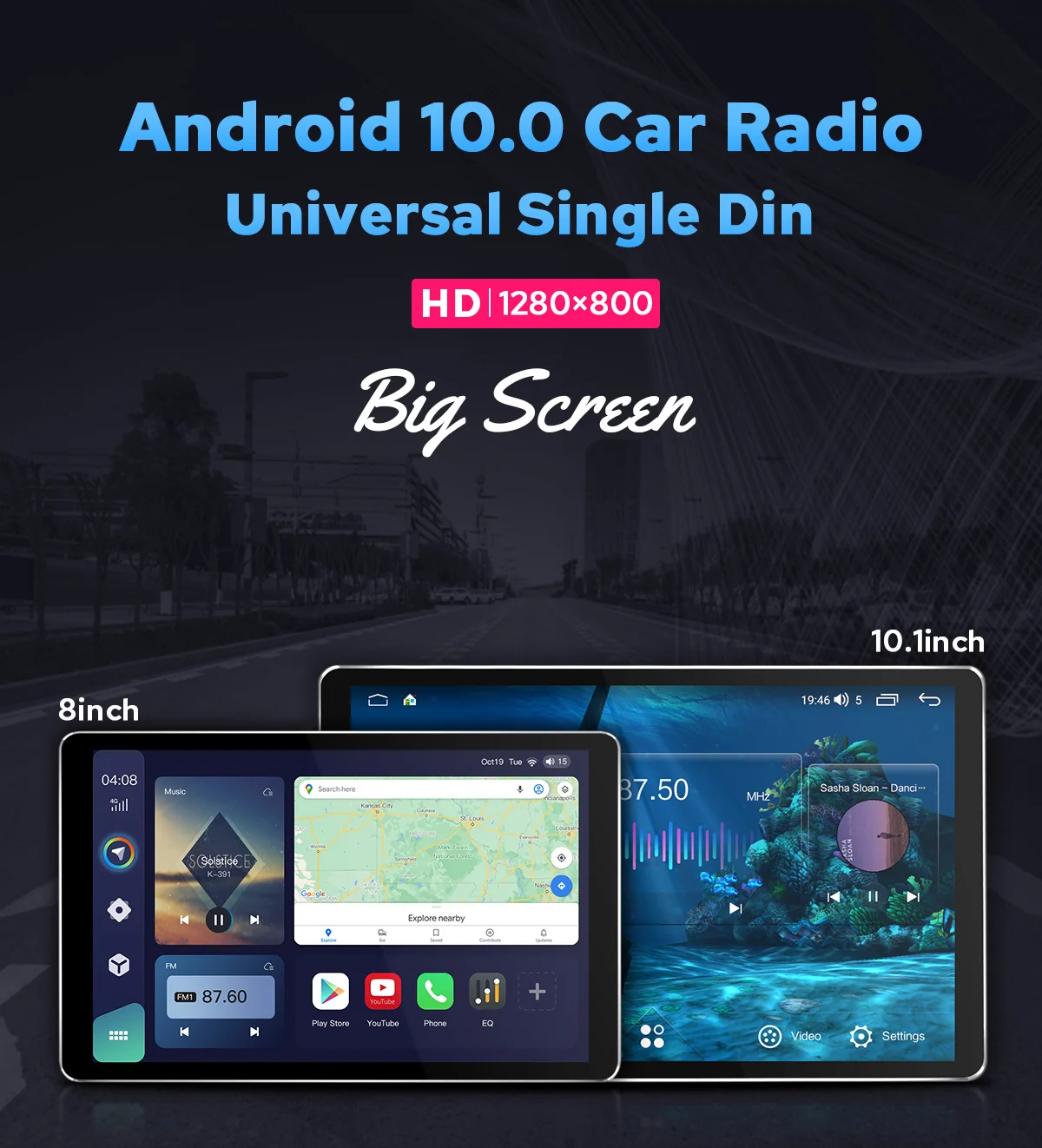 Автомобильный радиоприемник Qualcomm Snapdragon на Android, стереоприемник 10,1 дюйма, универсальная Автомагнитола 1DIN, головное устройство, мультимедийный Android, автомобильный 4GCarplay