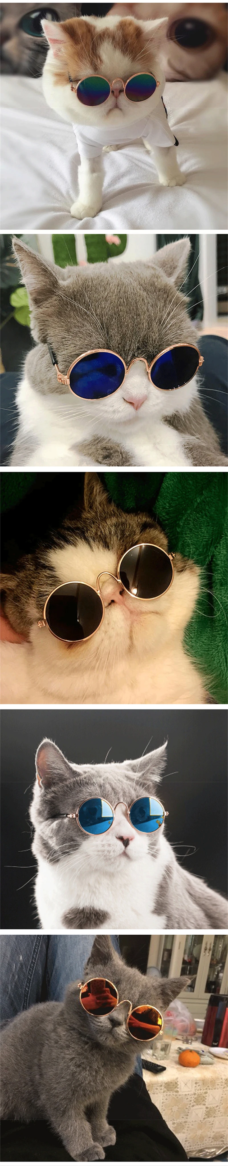 Очки солнцезащитные круглые в винтажном стиле для кошек и щенков