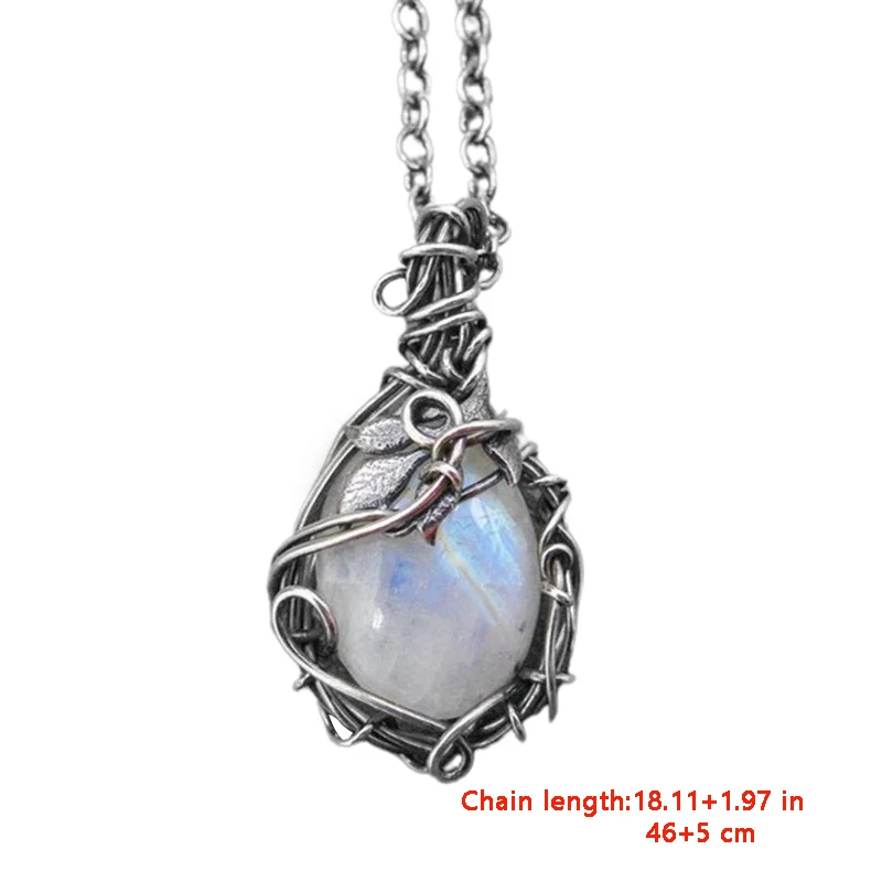 Ожерелье из натурального камня, винтажное ожерелье из лунного камня, цепочка до ключиц, ожерелье в этническом стиле для выпускного вечера, таинственное сказочное ожерелье листья ротанга, ювелирные изделия