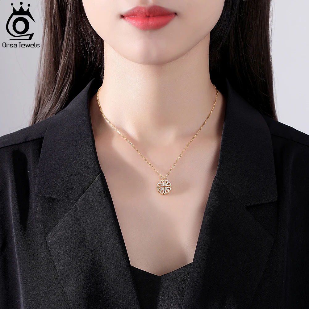 ORSA JEWELS 2 способа носить! Магнитный Клевер подлинное серебро 925 пробы кулон ожерелье для женщин подарок на день рождения ювелирные изделия SN296