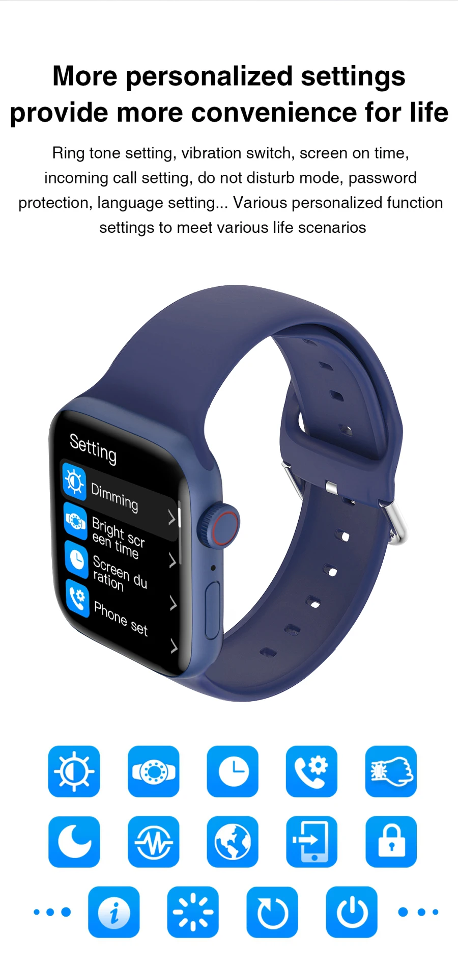 Настройка мелодии звонка, вибропереключатель, экран на время, настройка входящего вызова, режим не беспокоить, защита паролем, Настройка языка... Различные Персонализированные настройки функций для удовлетворения различных жизненных сценариев