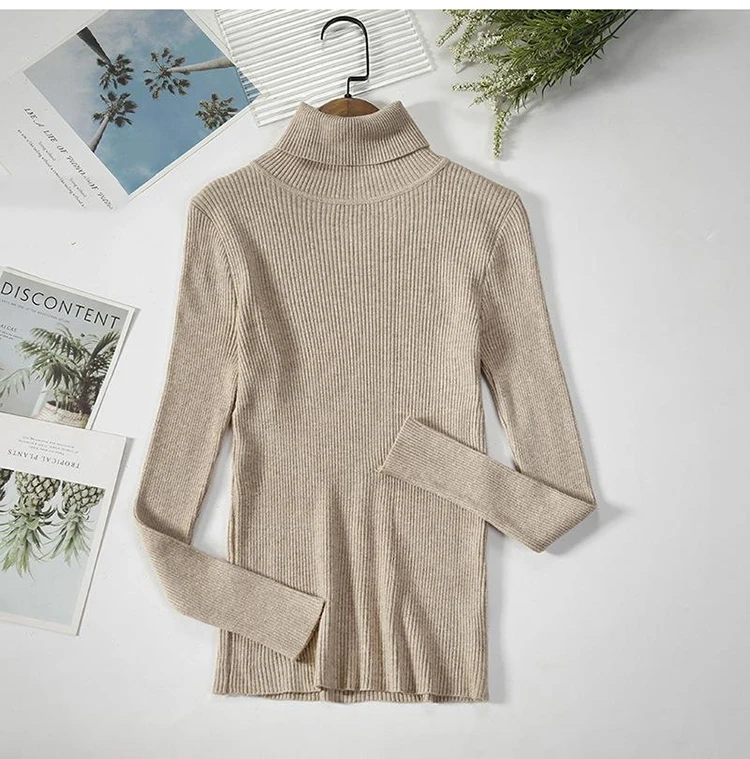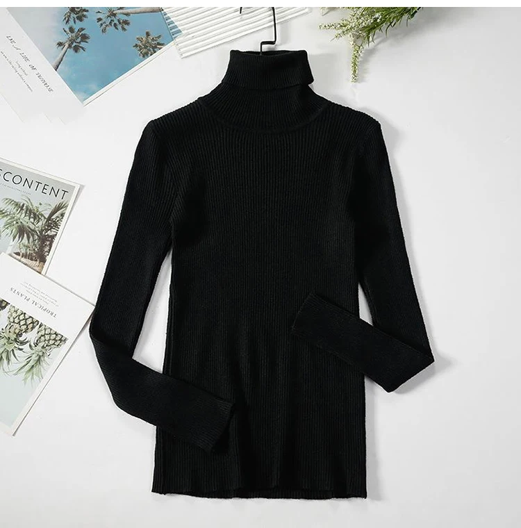 Вязаный женский свитер, облегающий женский свитер с длинным рукавом, топ с высоким воротником в стиле Харадзюку, женская сексуальная облегающая трикотажная одежда