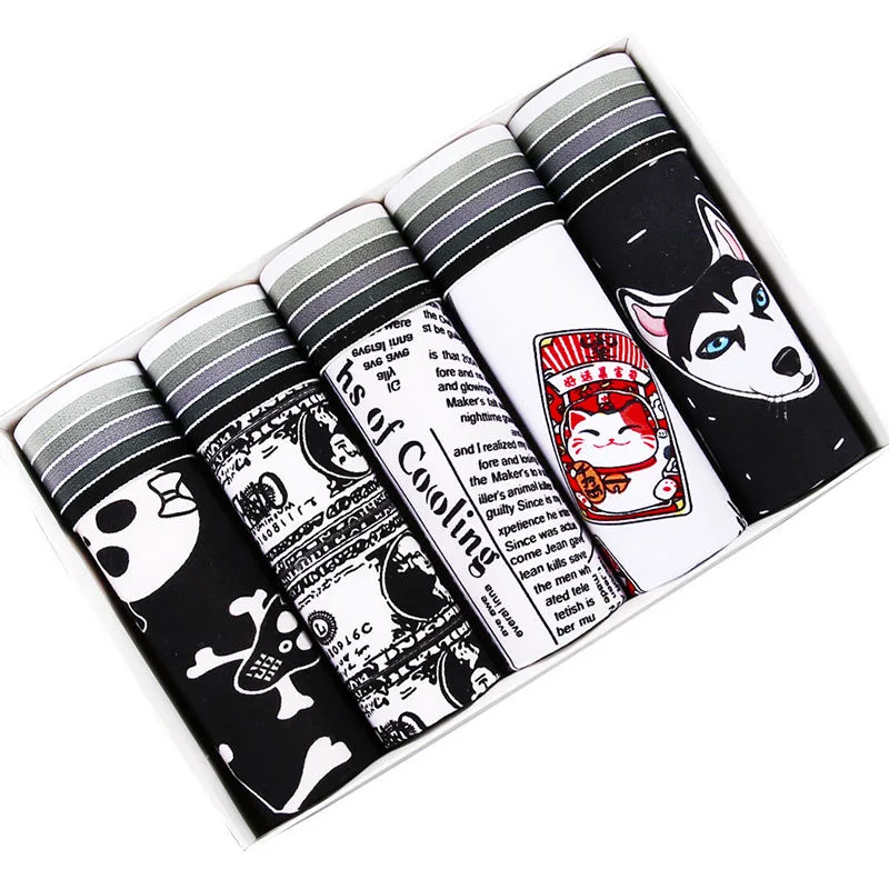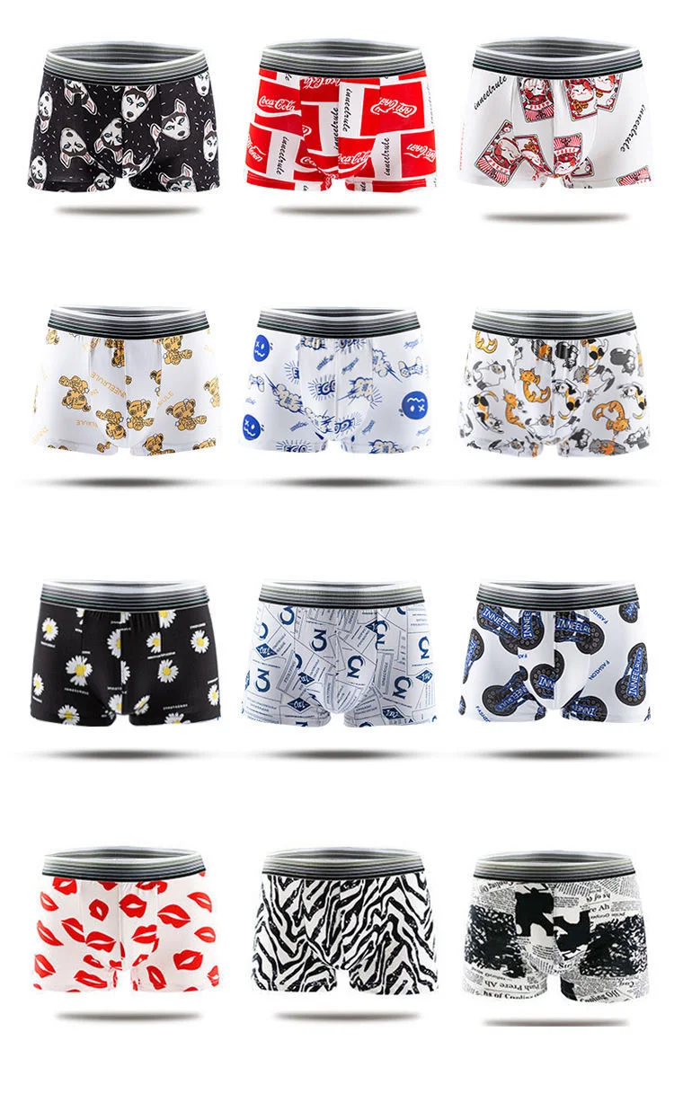 Мужское нижнее белье, боксеры с модным принтом, мужские трусы-боксеры, мужские трусы с мультяшным рисунком, мужские шорты-боксеры