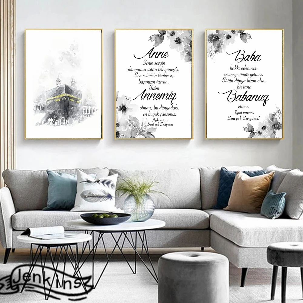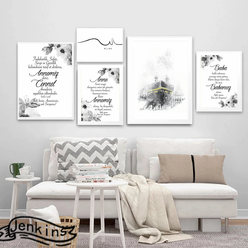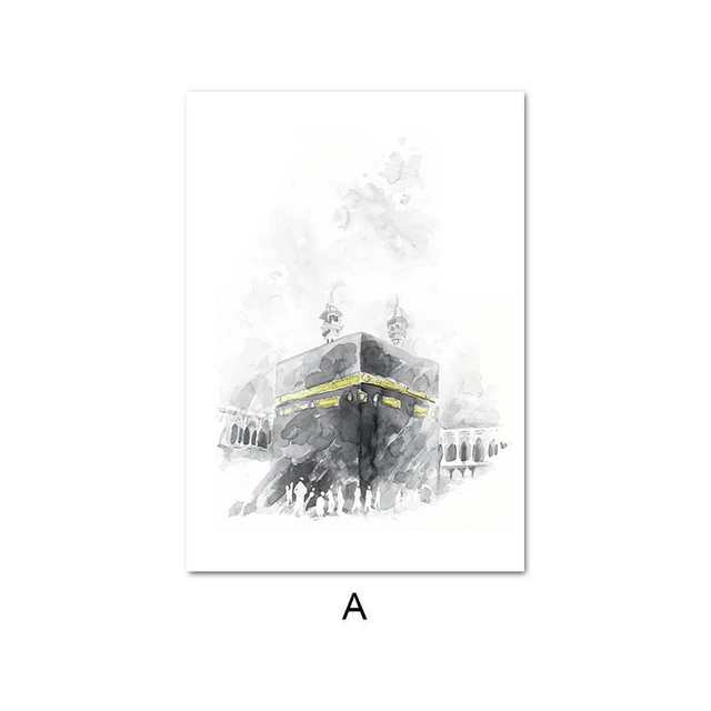 Черно-белый акварель исламские цитаты постер Холст Картина Арабская Кааба стена Аллаха художественный принт мусульманская гостиная домашний декор