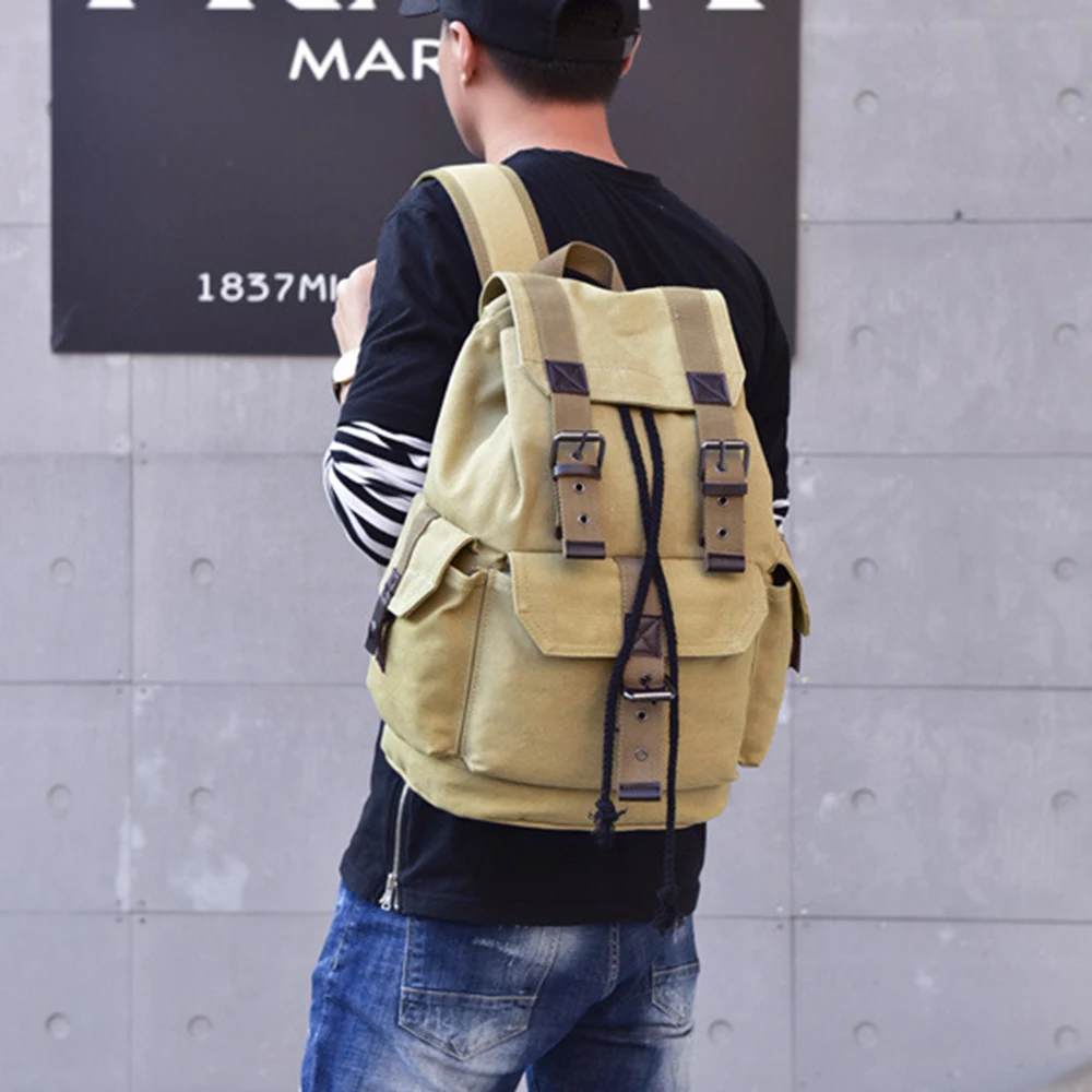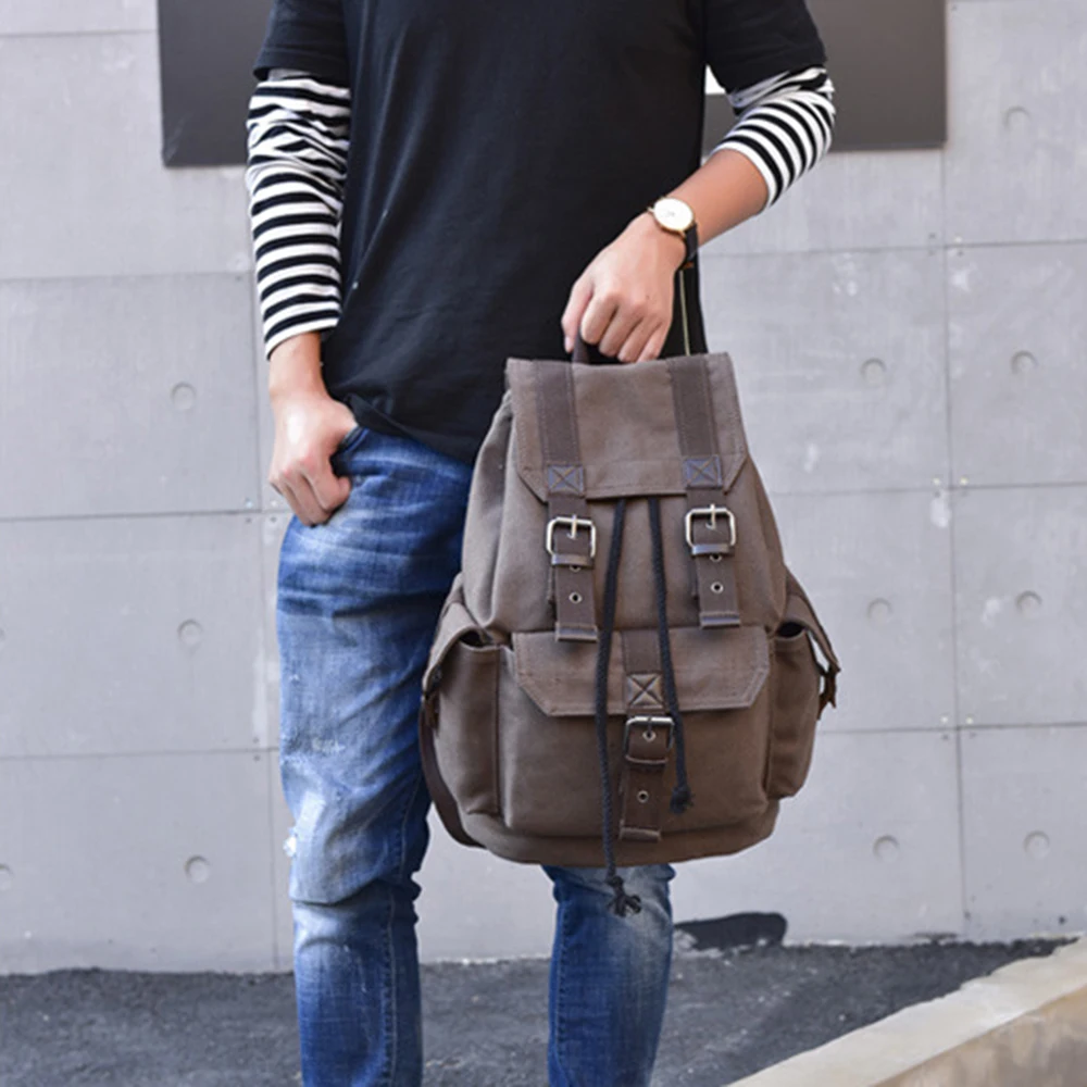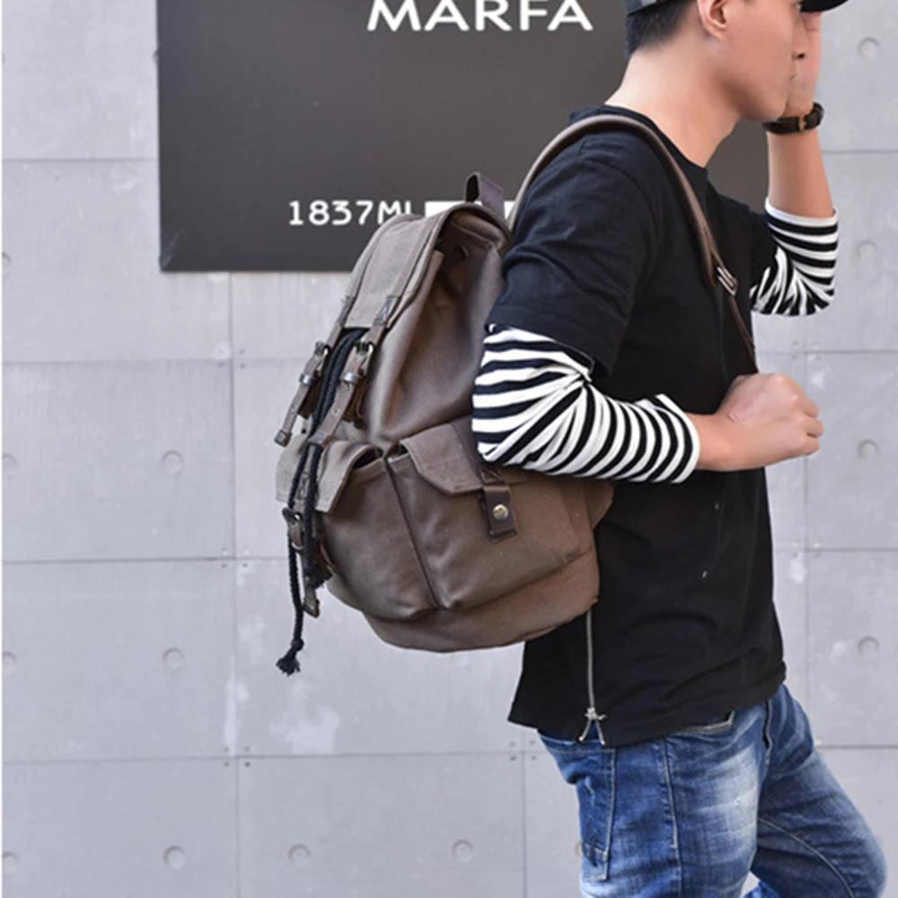 Мужской рюкзак, винтажный холщовый рюкзак, школьная сумка, большой ...