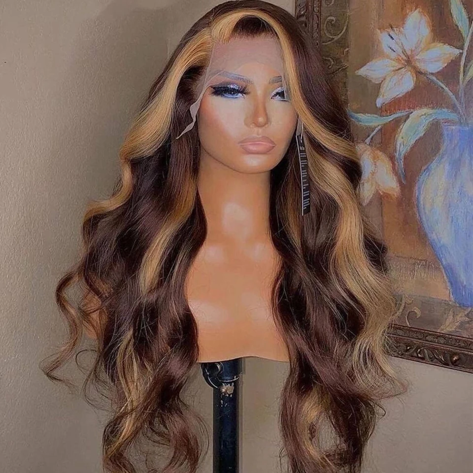 Хайлайтер, волнистые передние парики на сетке, 180% бразильские неповрежденные волосы для женщин, светлые человеческие волосы с эффектом омбре, волнистые искусственные волосы