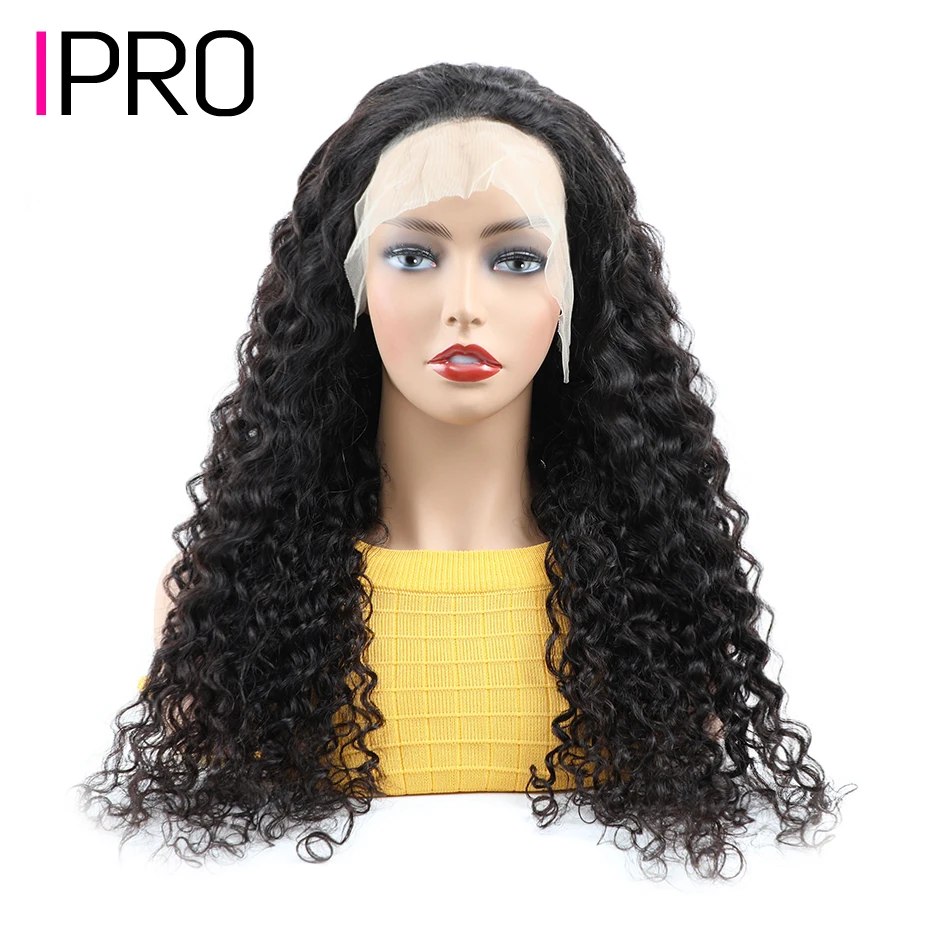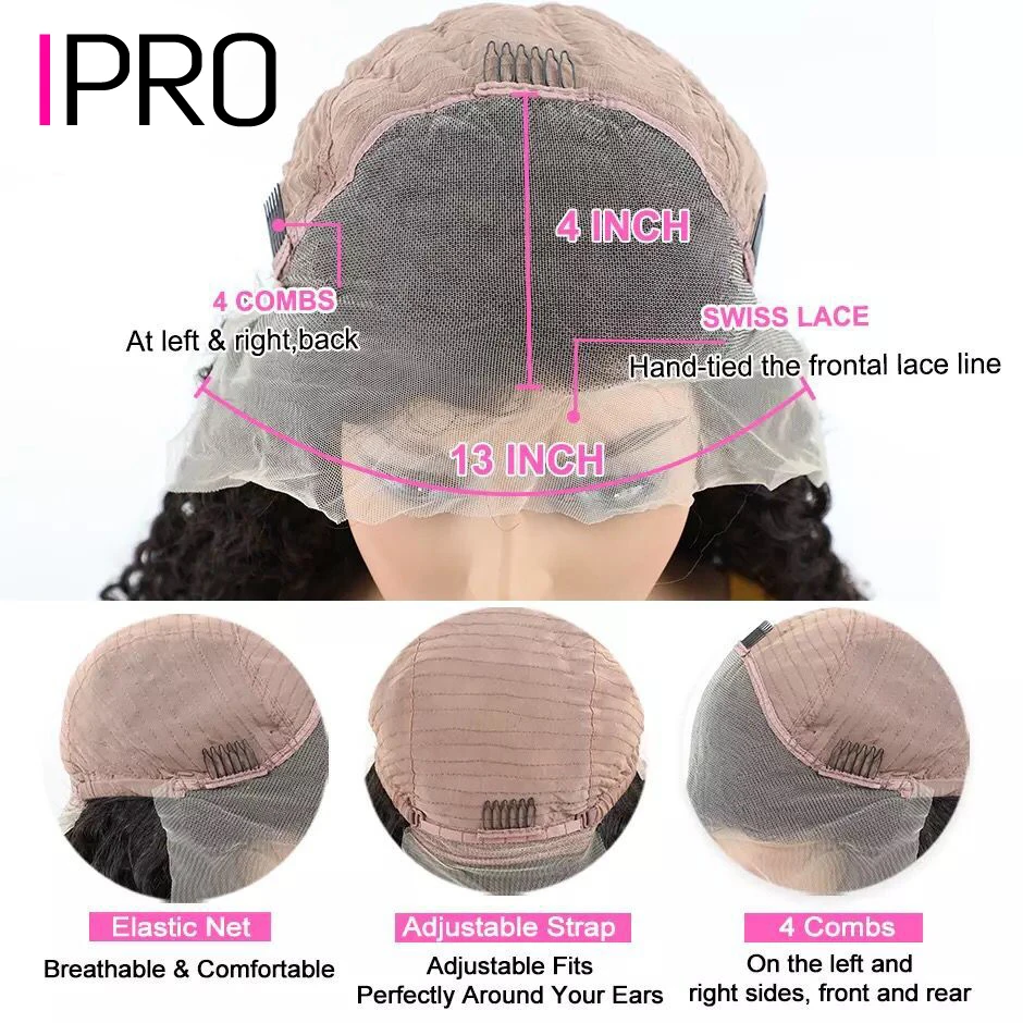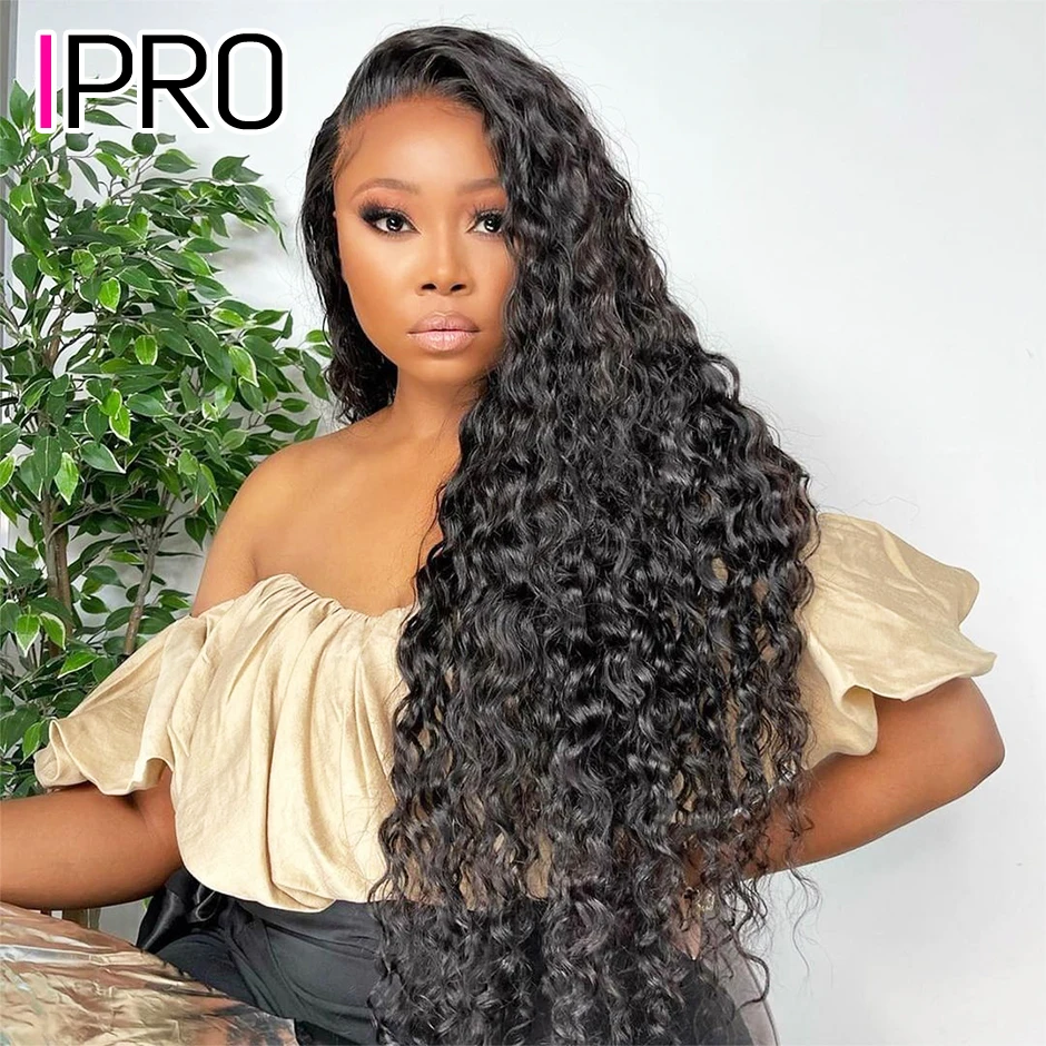 Парик IPRO Water Wave 13x4 HD, парики из натуральных волос на сетке спереди, предварительно выщипанные бразильские волнистые фронтальные парики, парик с 180% вьющимися волосами