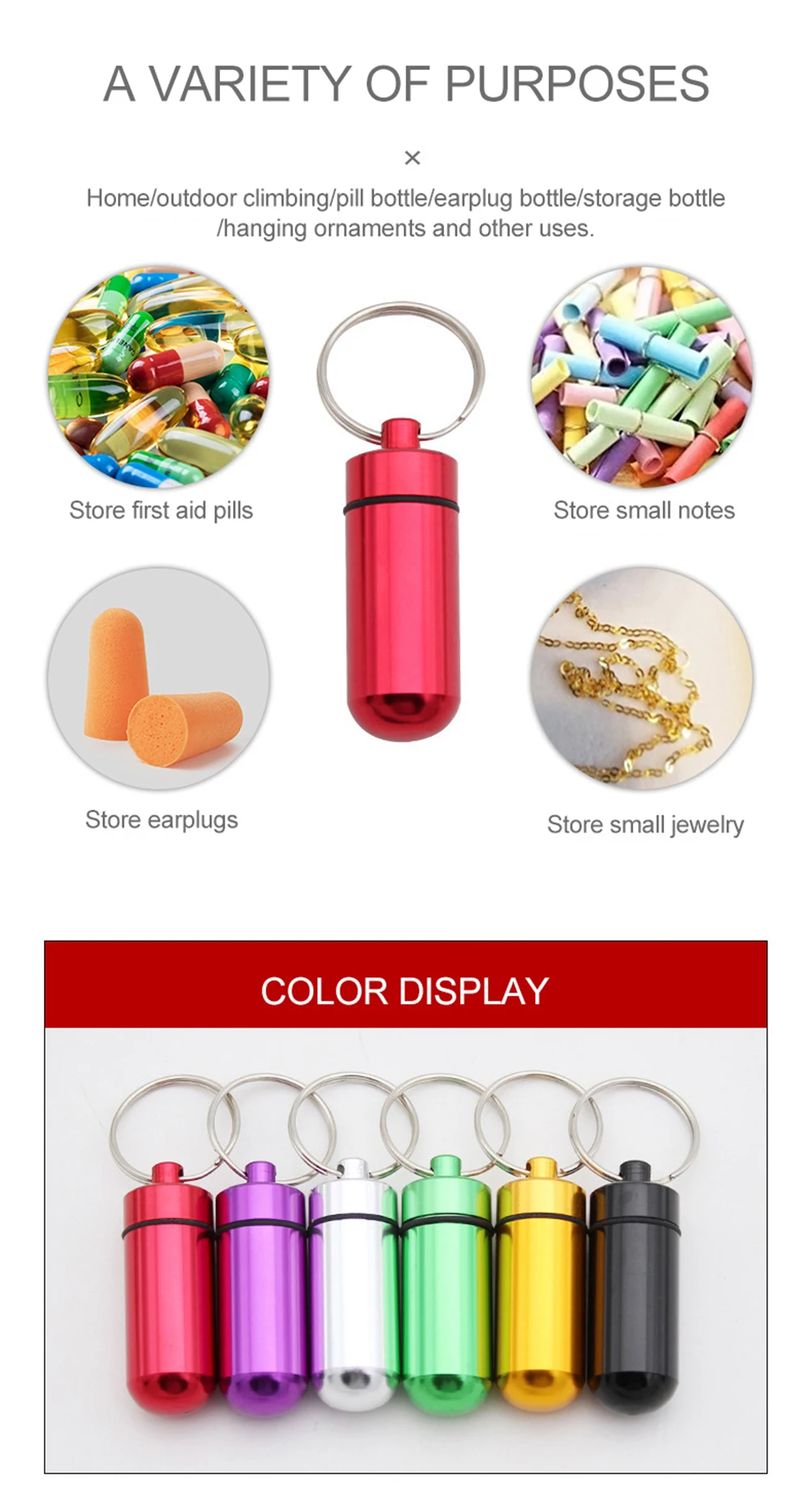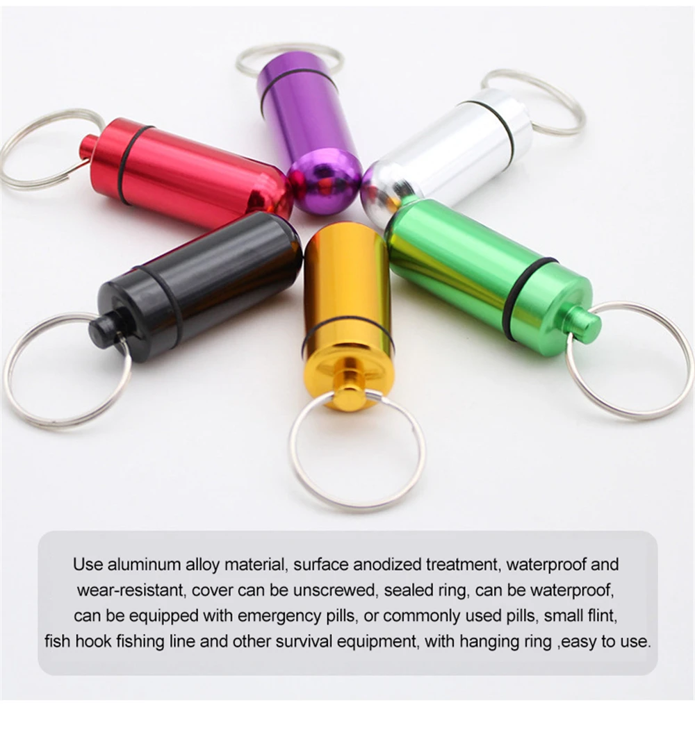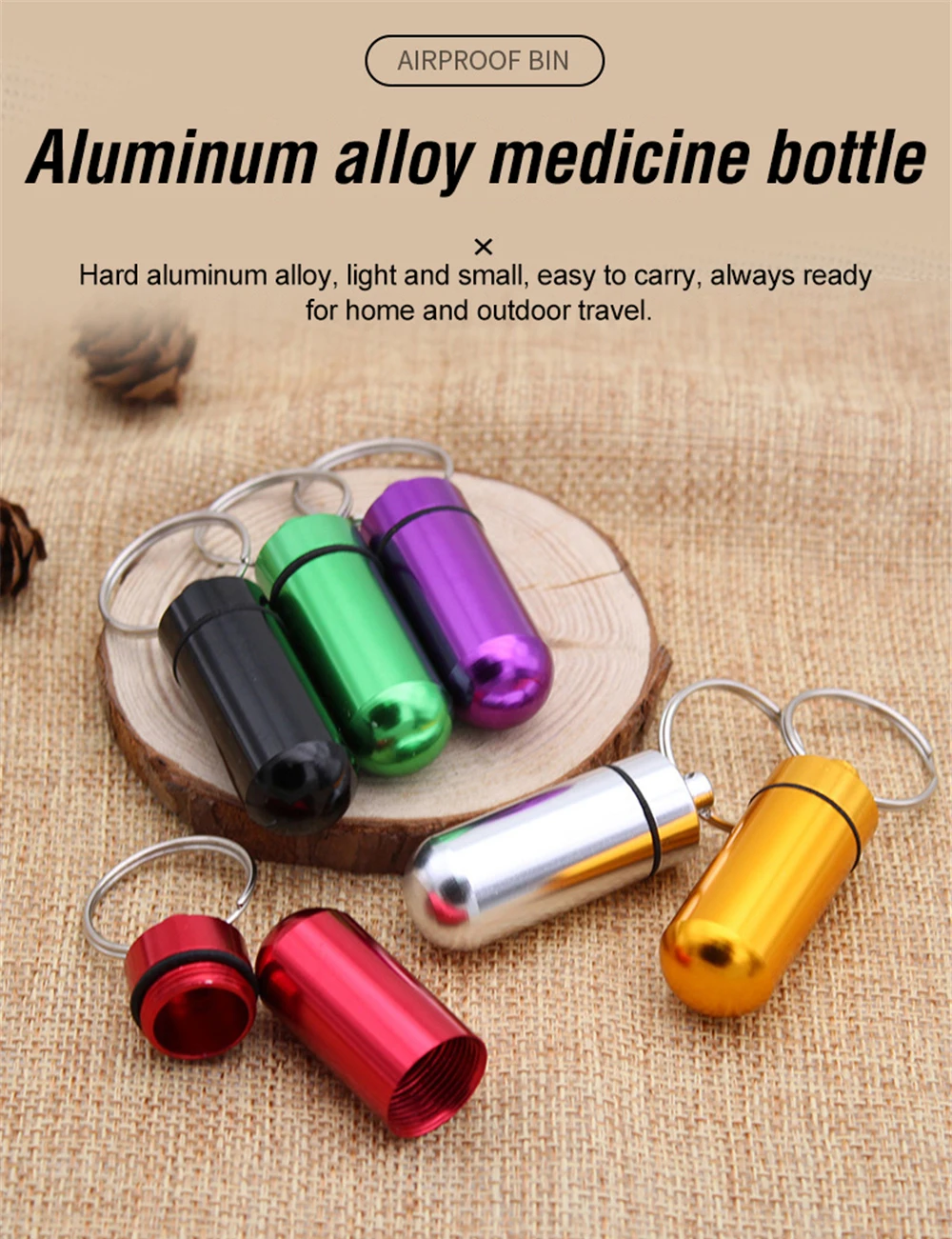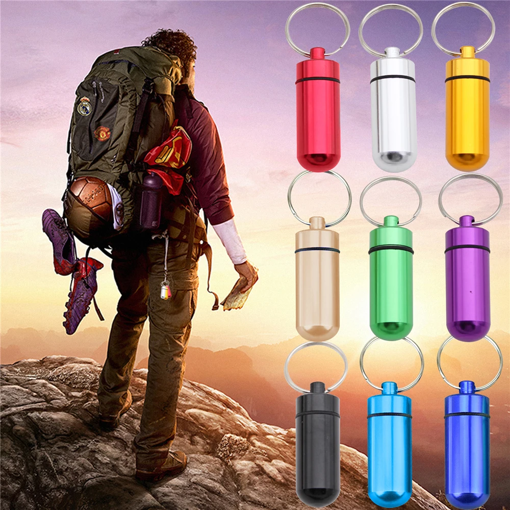 Коробка для таблеток для выживания на природе, портативный брелок из алюминиевого сплава, водонепроницаемый герметичный держатель для медицинских бутылок, картридж для лекарств, дорожные инструменты