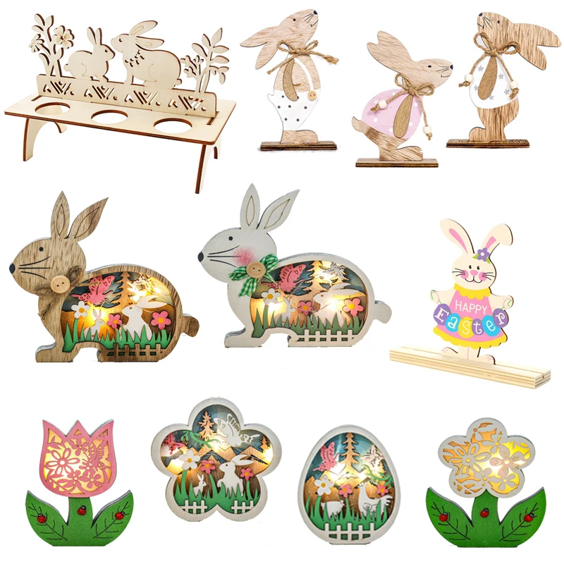 Пасхальные украшения 2021 для дома, Пасхальный кролик деревянные ук...
