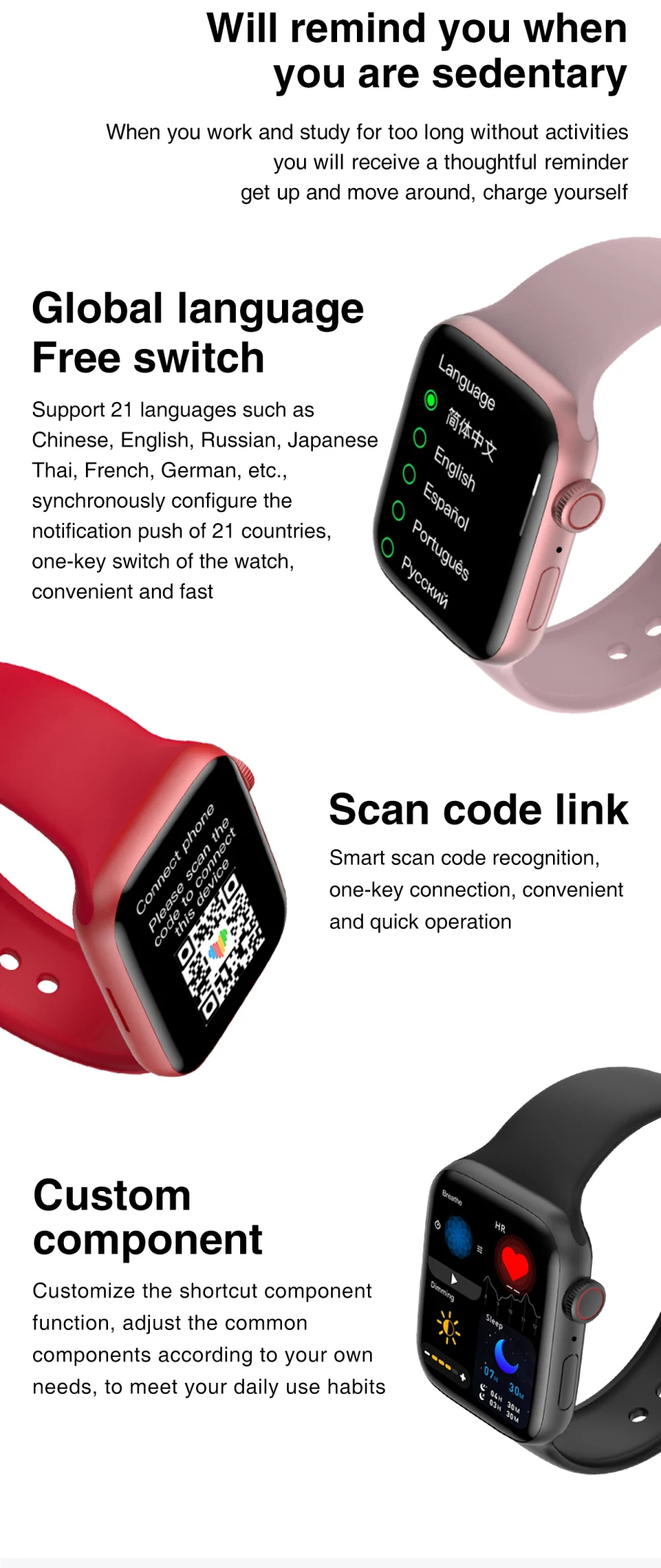 1,72 дюймов 320*380 TFT HD полный экран, высокое разрешение пикселейУзкая оправа со всех сторон не мешает тяжелой черной оправе.
