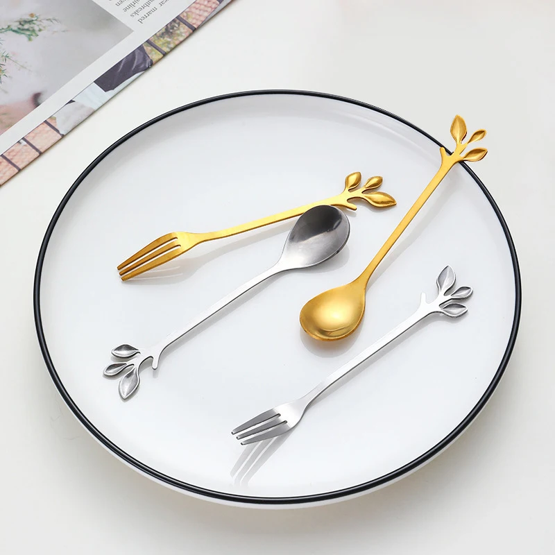 Креативная ложка из нержавеющей стали, ложки в виде листьев, вилка,...